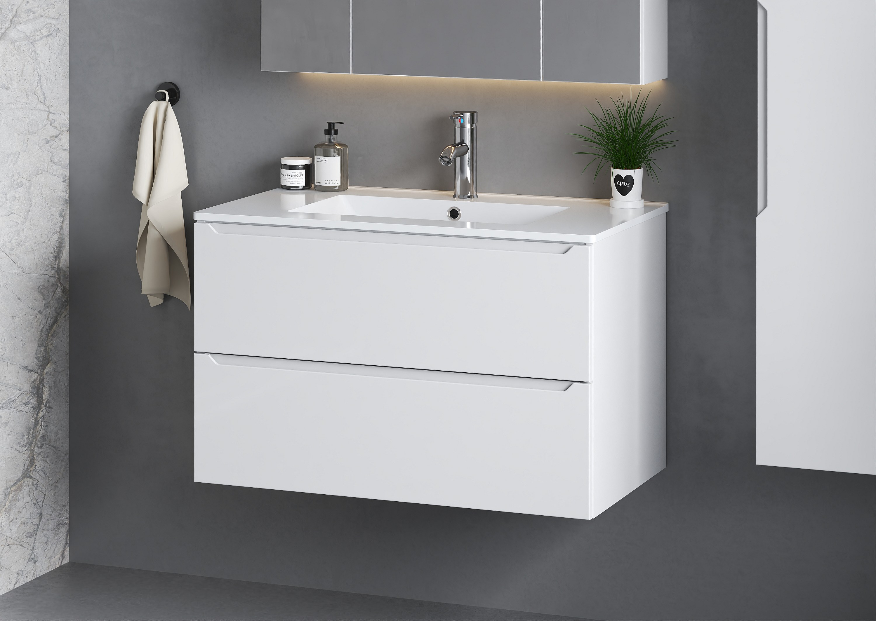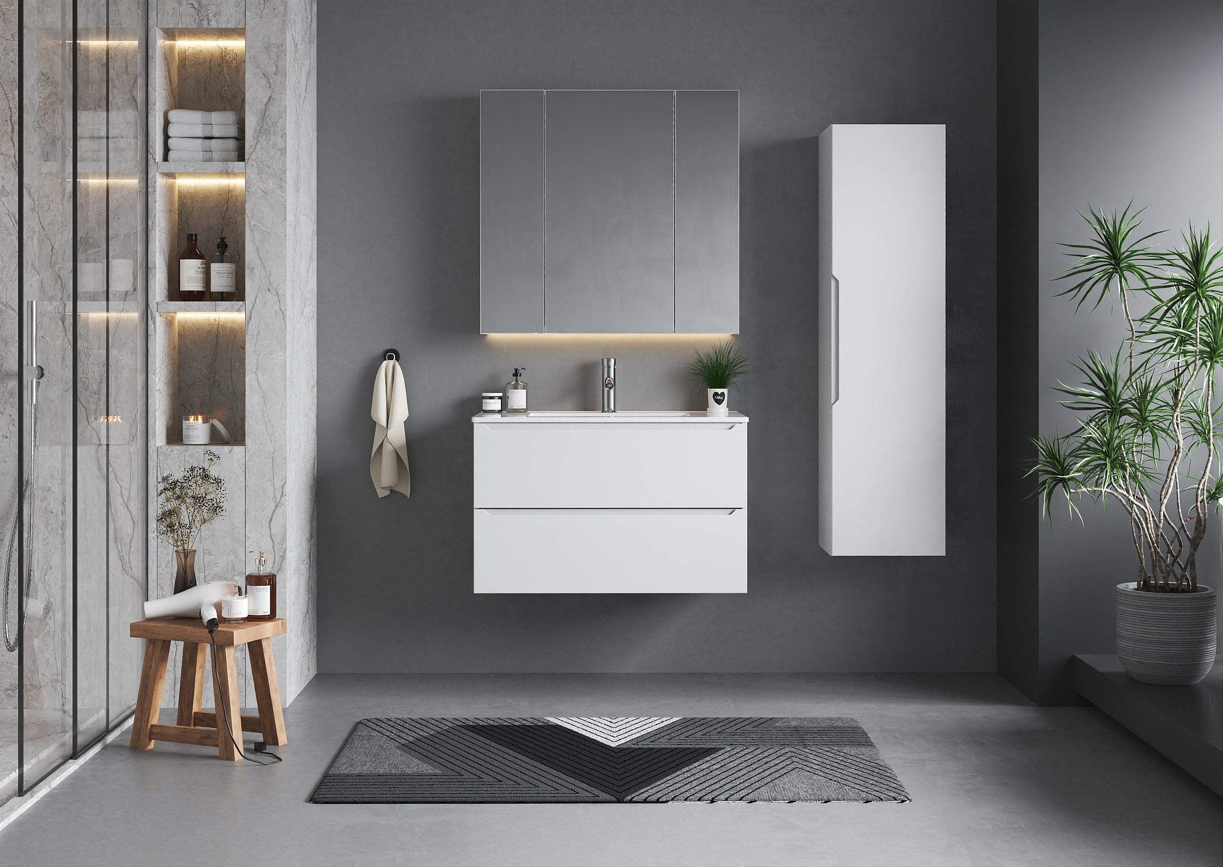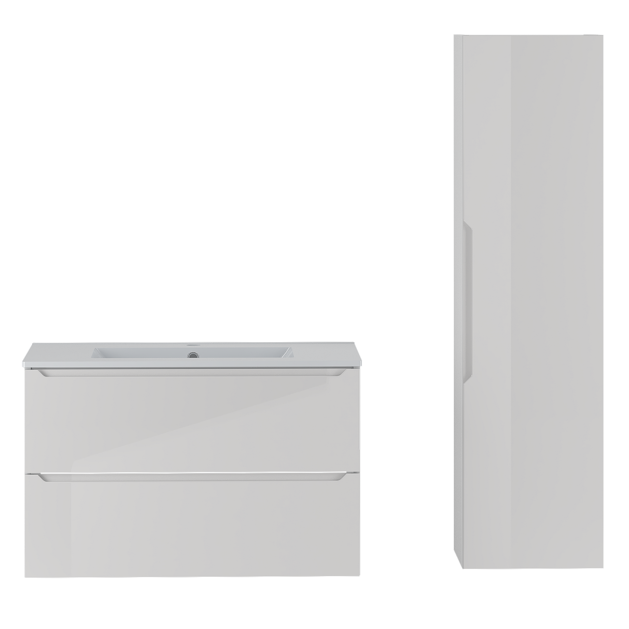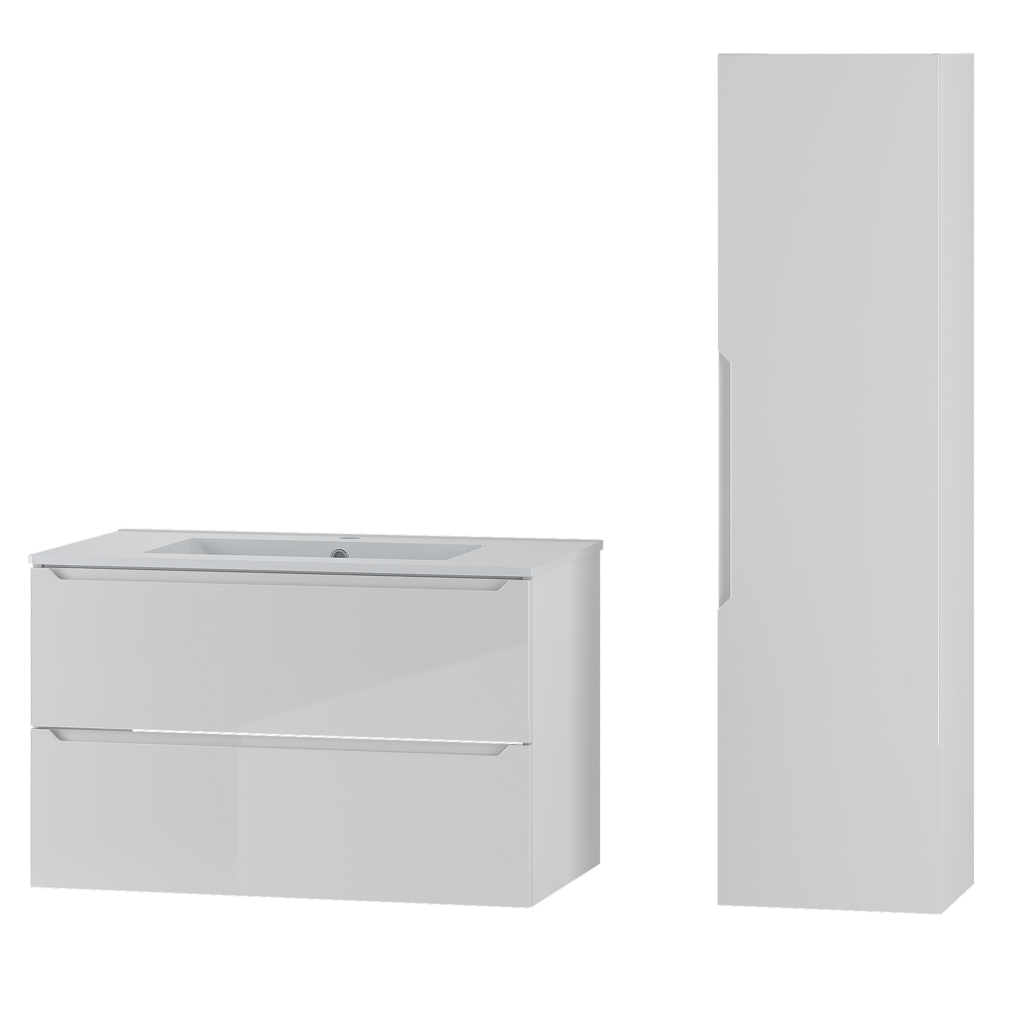 Weißes Badezimmer-Set 80 cm Schrank mit Waschbecken und Hochschrank Etna