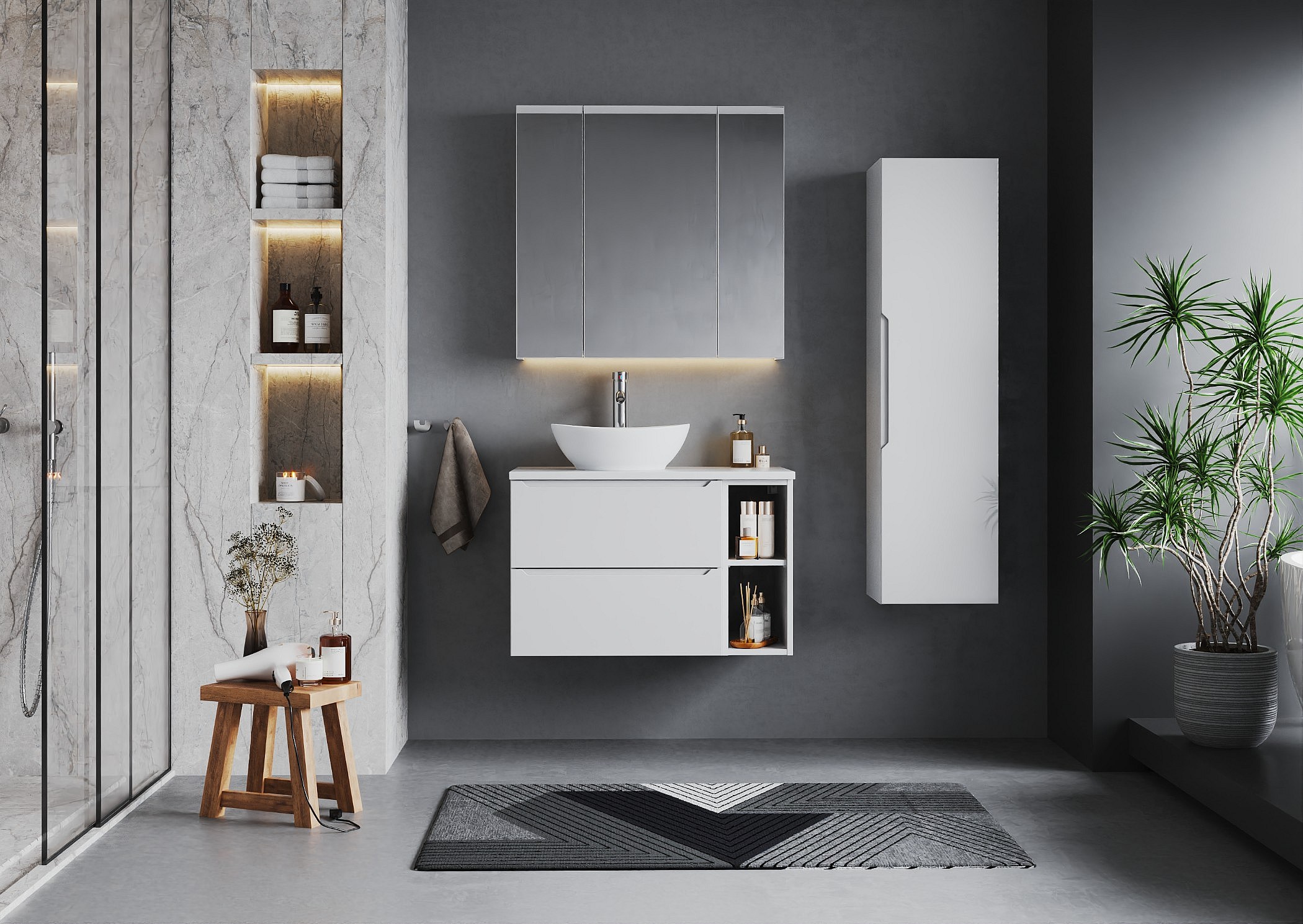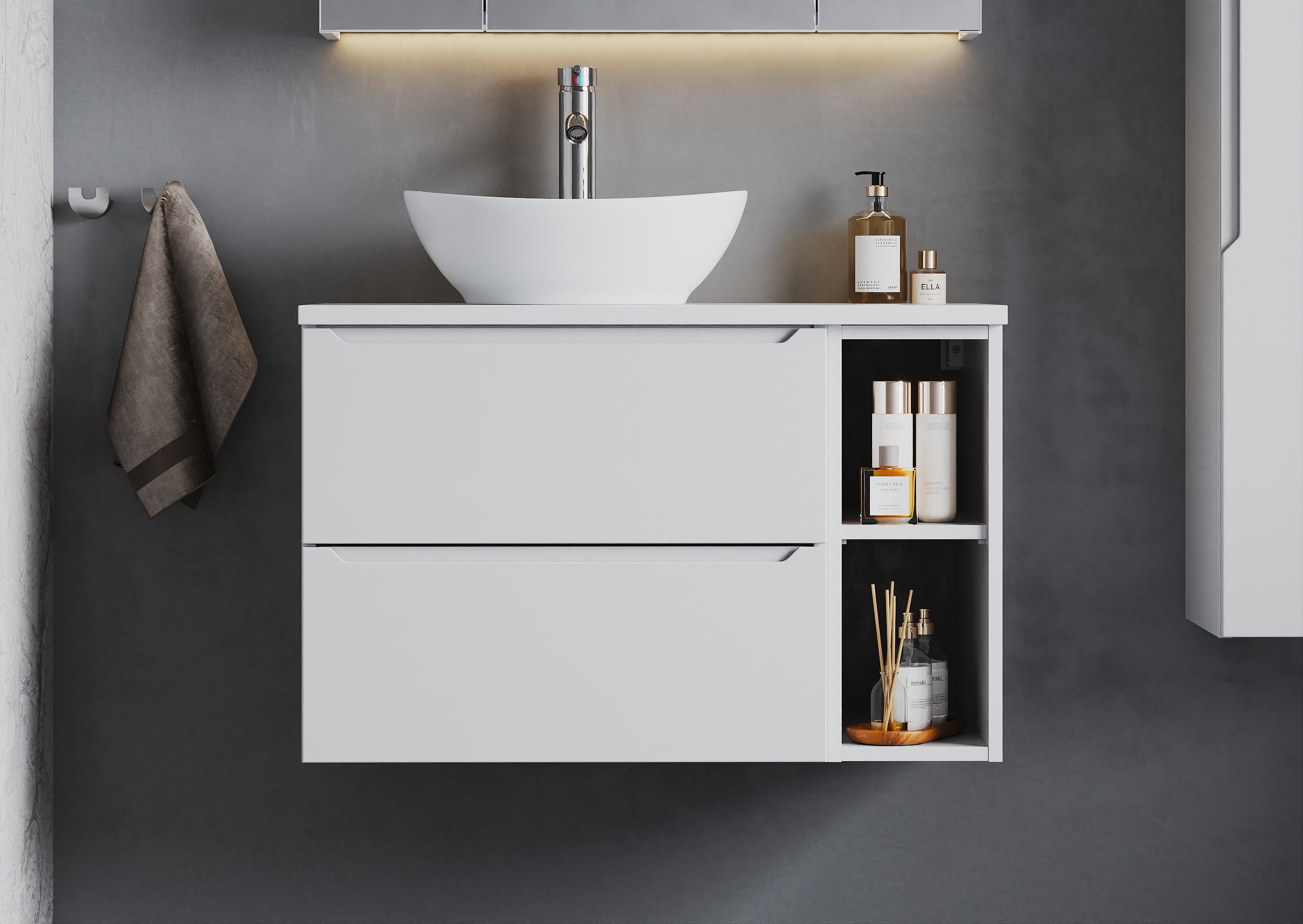 Weißes Badezimmer-Set 80 cm Schrank Regal Arbeitsplatte Etna