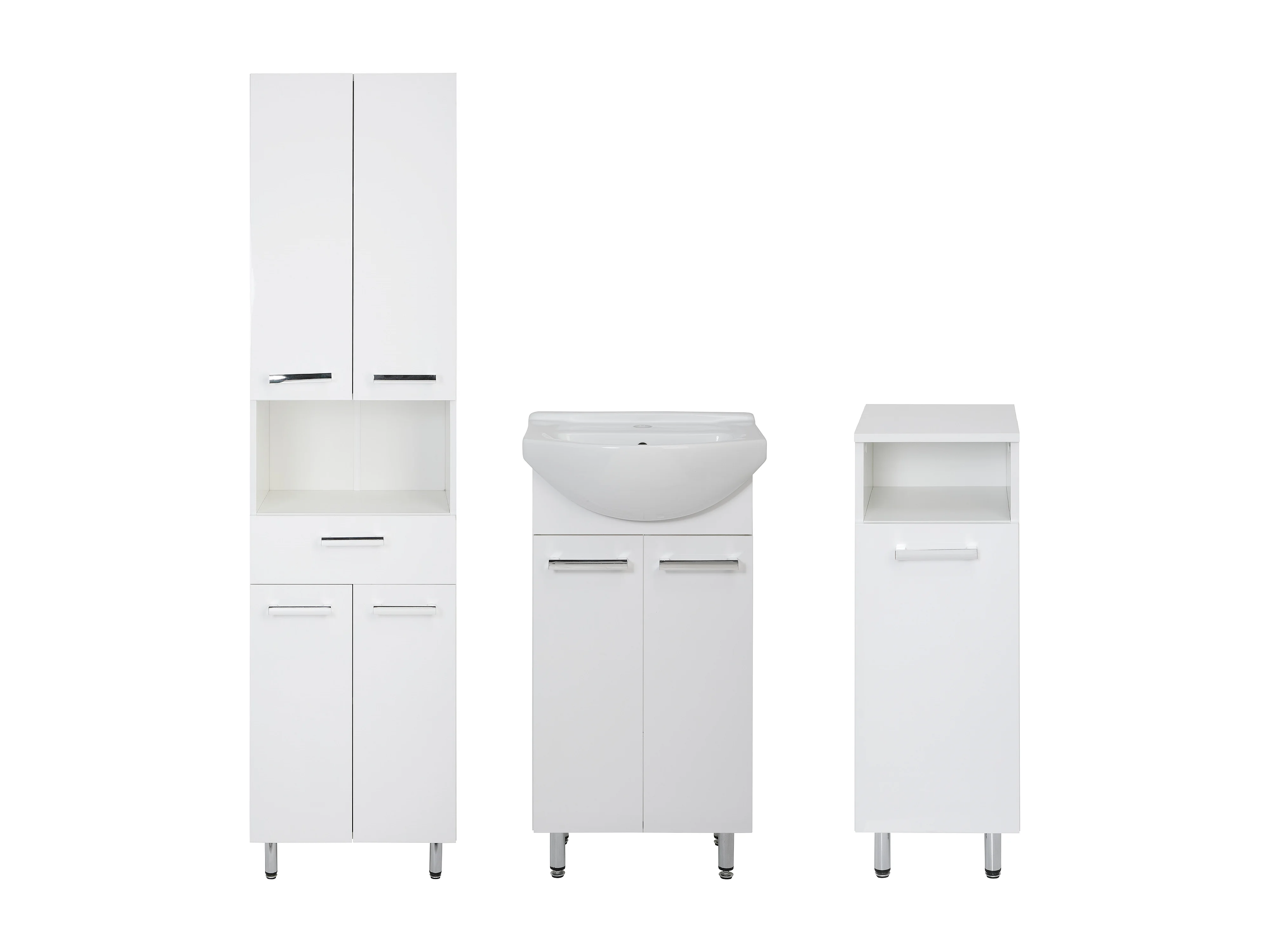 Weißes Badezimmer-Set, stehend, 45 cm, Waschbeckenunterschrank, 50 cm hoher Unterschrank, Lupo-Halbunterschrank