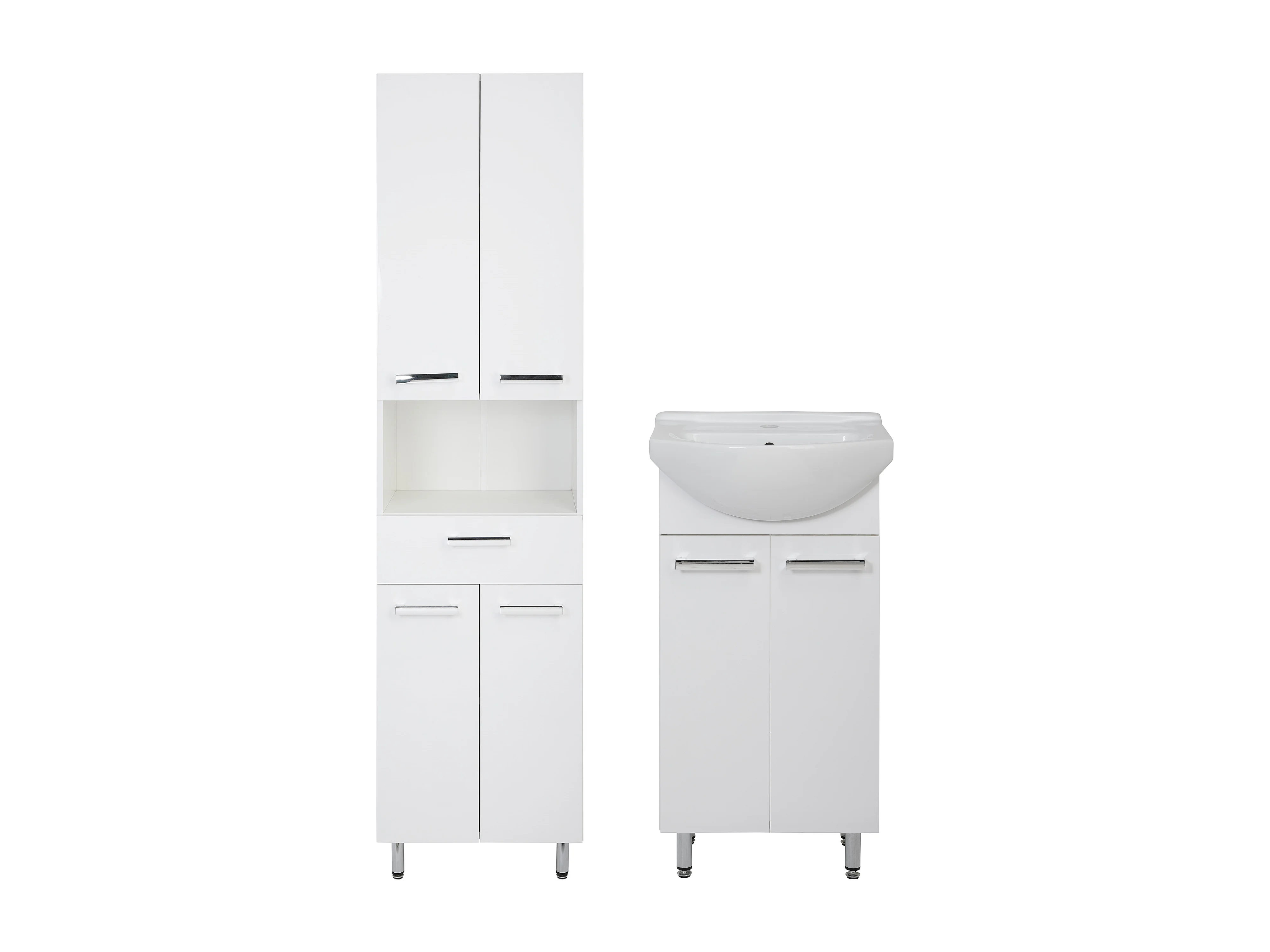 Weißes Badezimmer-Set, stehend, 45 cm, Waschbeckenunterschrank, 50 cm Lupo