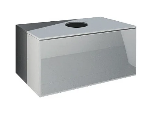 Weißes Badezimmermöbelset aus der OWL-Kollektion. Hochschrank, Waschbeckenunterschrank, Spiegel, Siphon und LEDs.