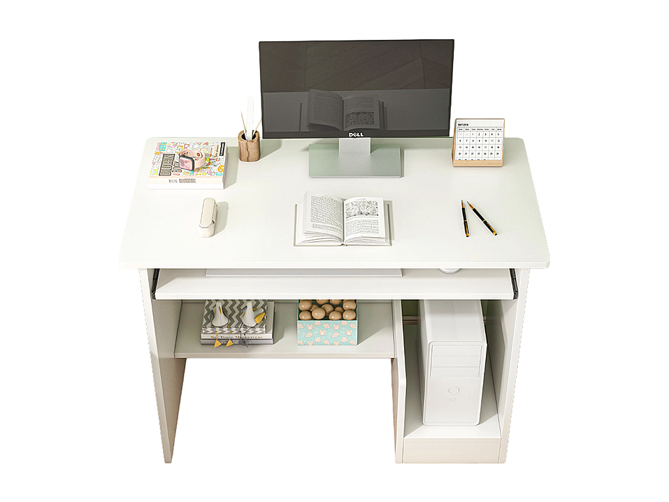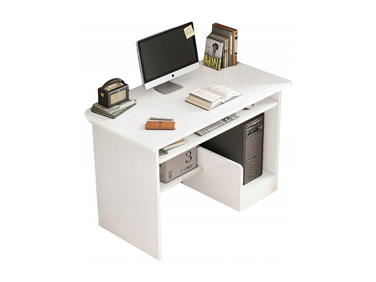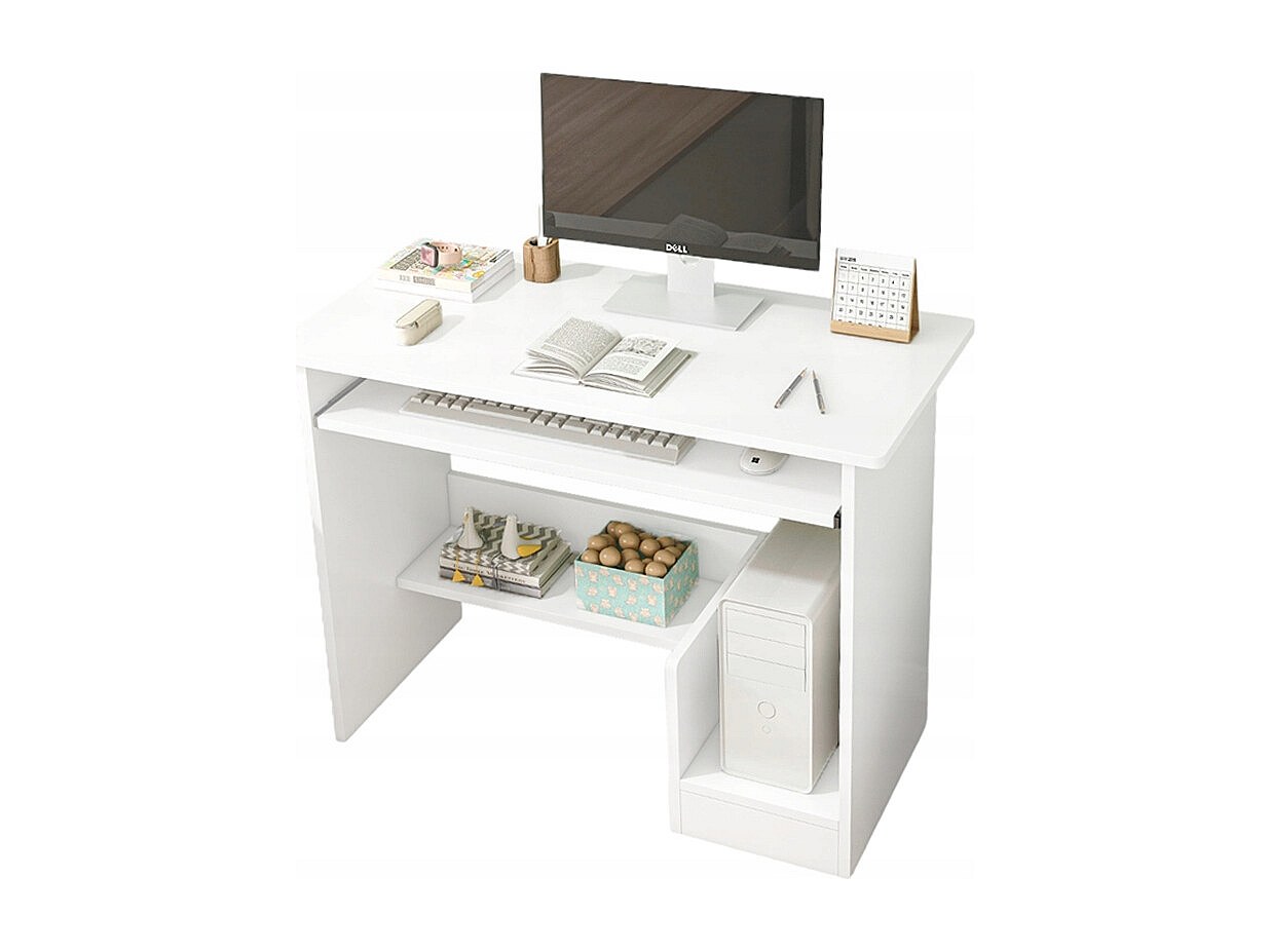 ⭐ Weißer Computerschreibtisch mit ausziehbarer Tastaturablage – praktische, kompakte Lösung ⭐