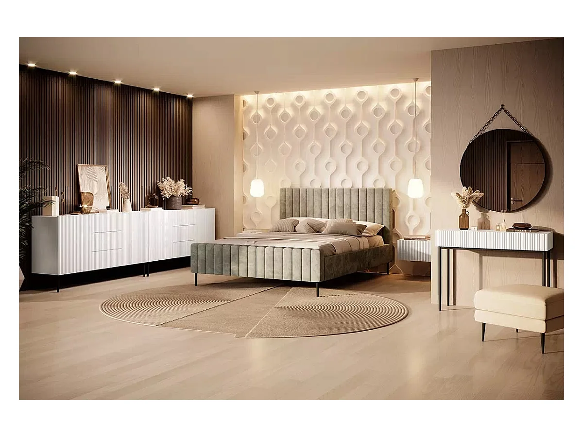 Weißes Sideboard mit 2 Türen und 3 zentralen Schubladen mit schwarzem Metallfuß 150x45 cm