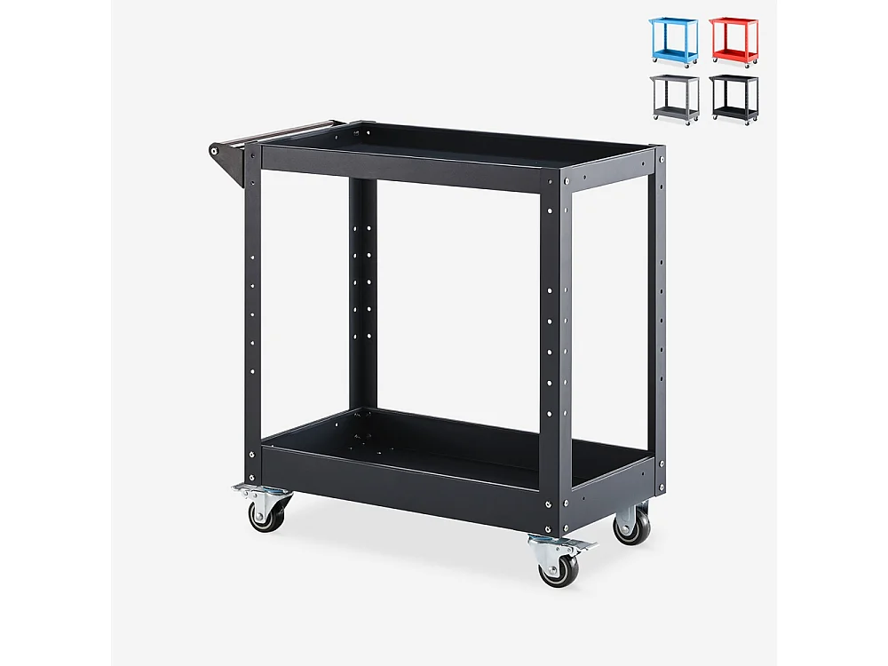 Werkzeugwagen aus Metall 2 Ablagen für Werkstatt Garage Kerey - Schwarz