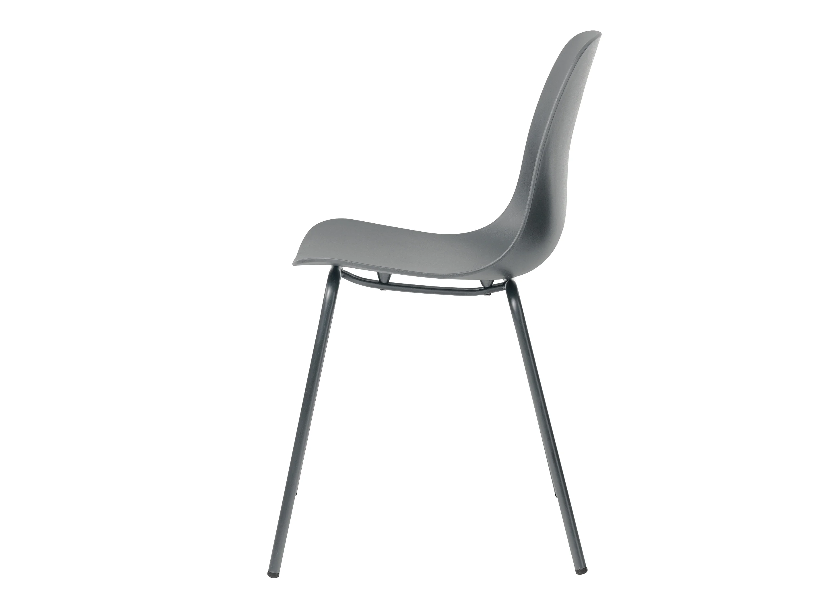Whims Esszimmerstuhl in grau und Metallgestell.