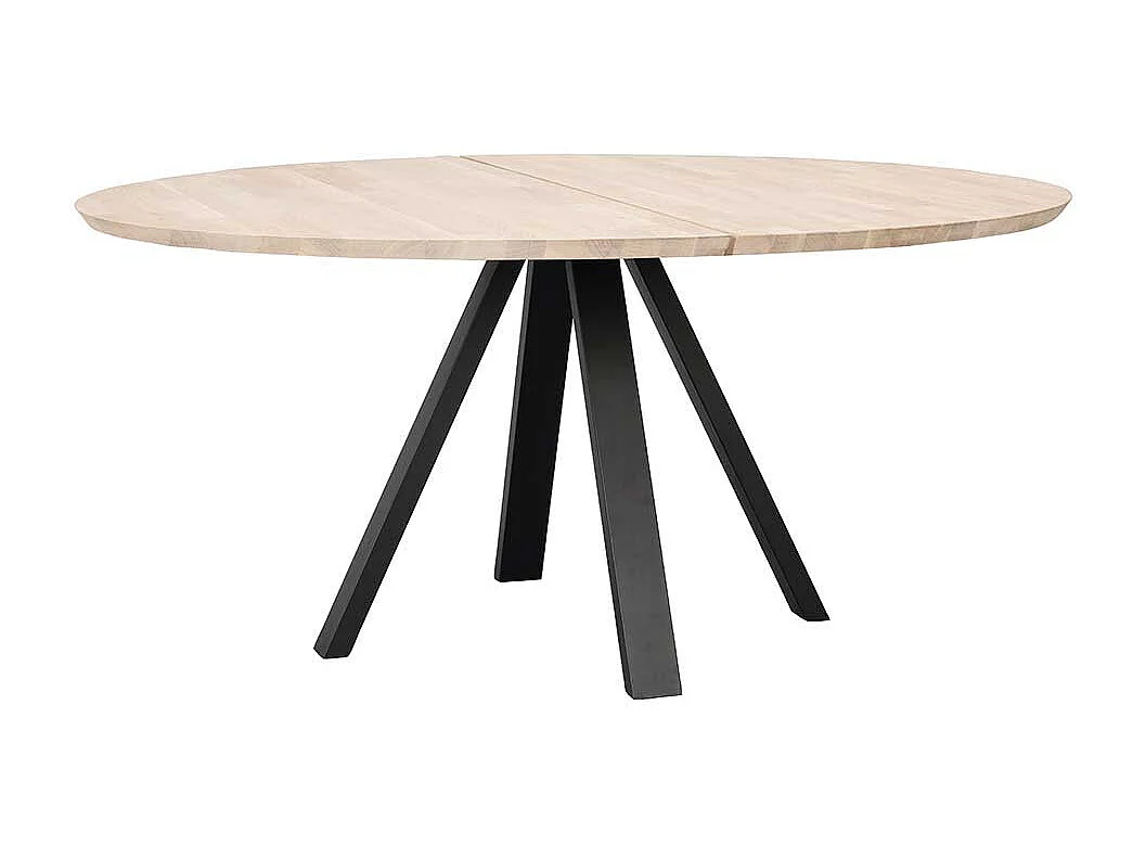 White Wash Esstisch aus Eiche Massivholz Vierfußgestell aus Metall