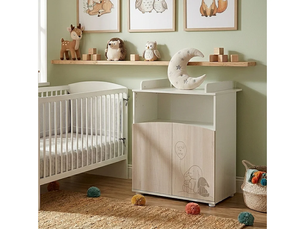 Wickelkommode mit 2 Türen und einem offenen Fach im Holzdekor