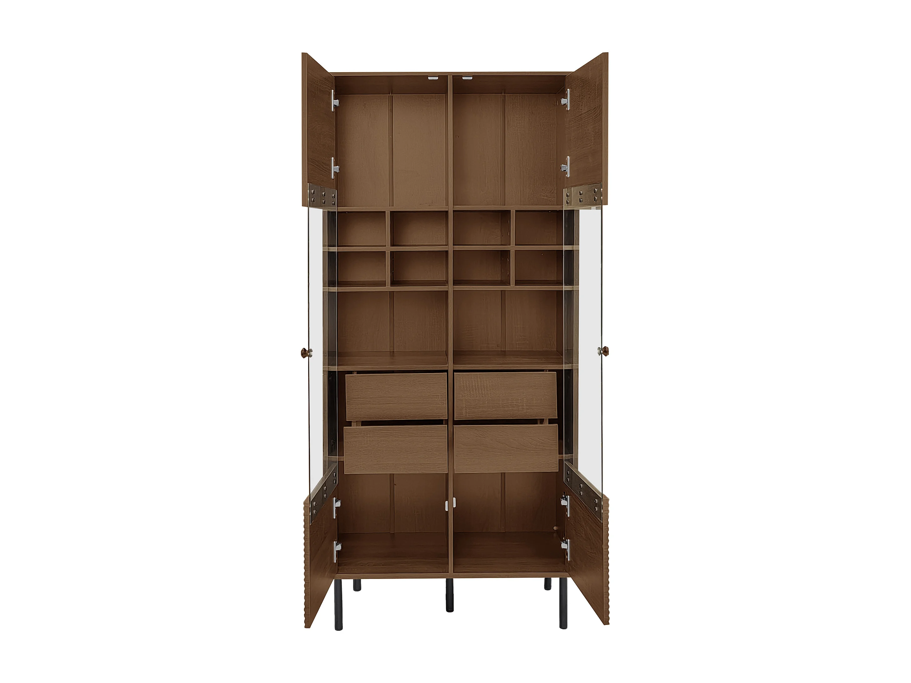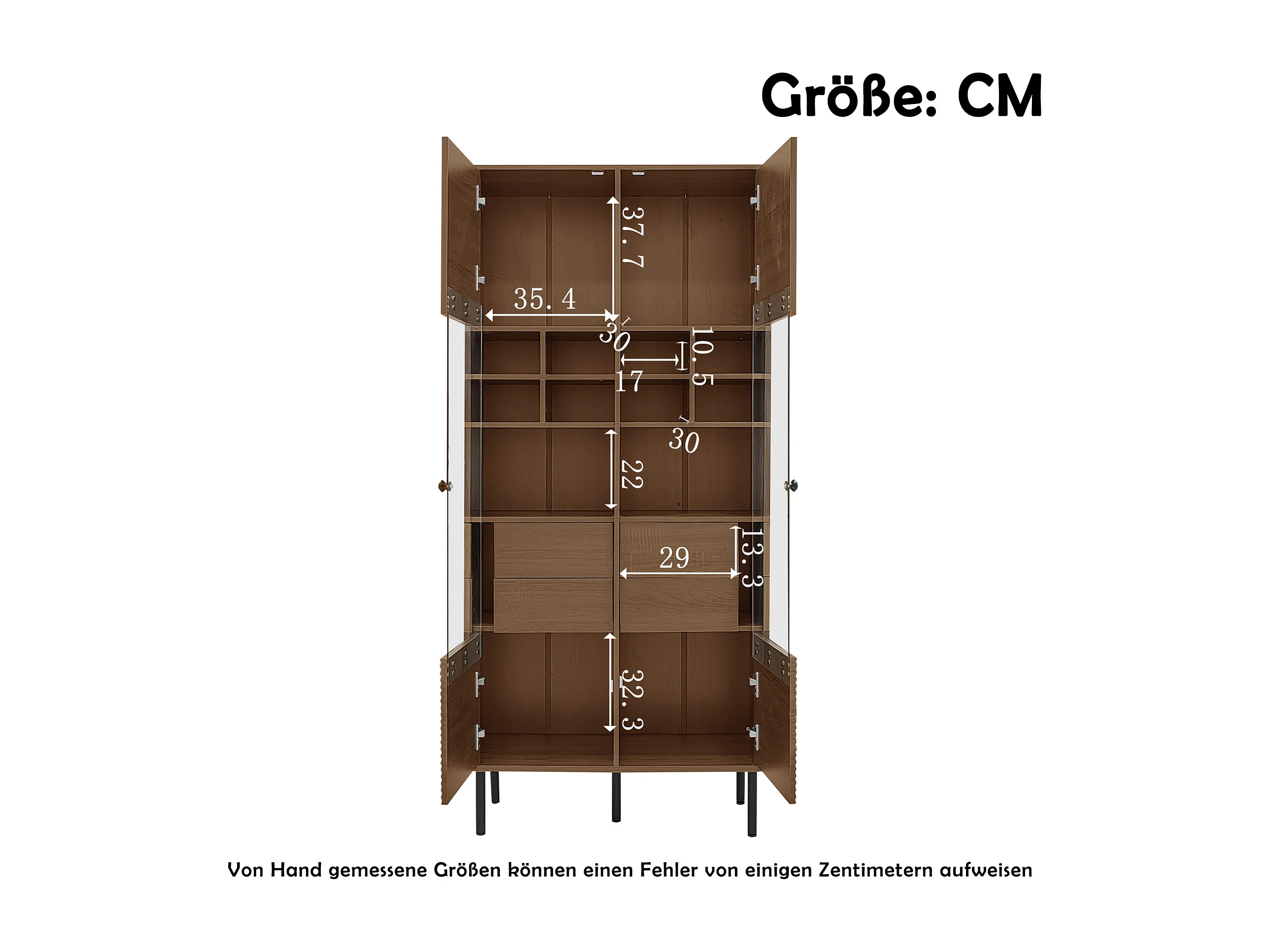 Wiederverwendbare Vitrine in Walnussoptik – 75,5 x 35 x 164,5 cm – Glasfront + Einlegeboden + verdeckte Schublade – MDF – natur