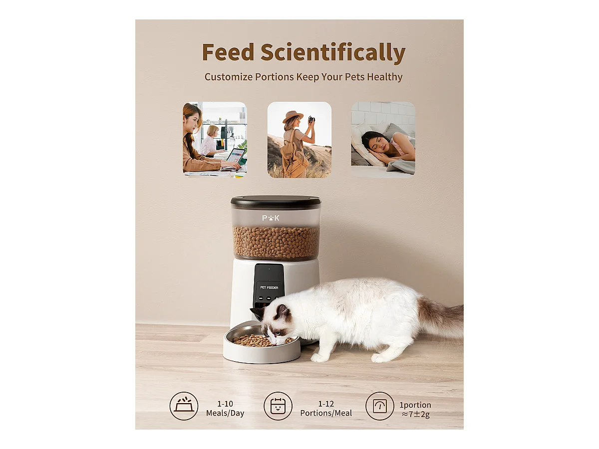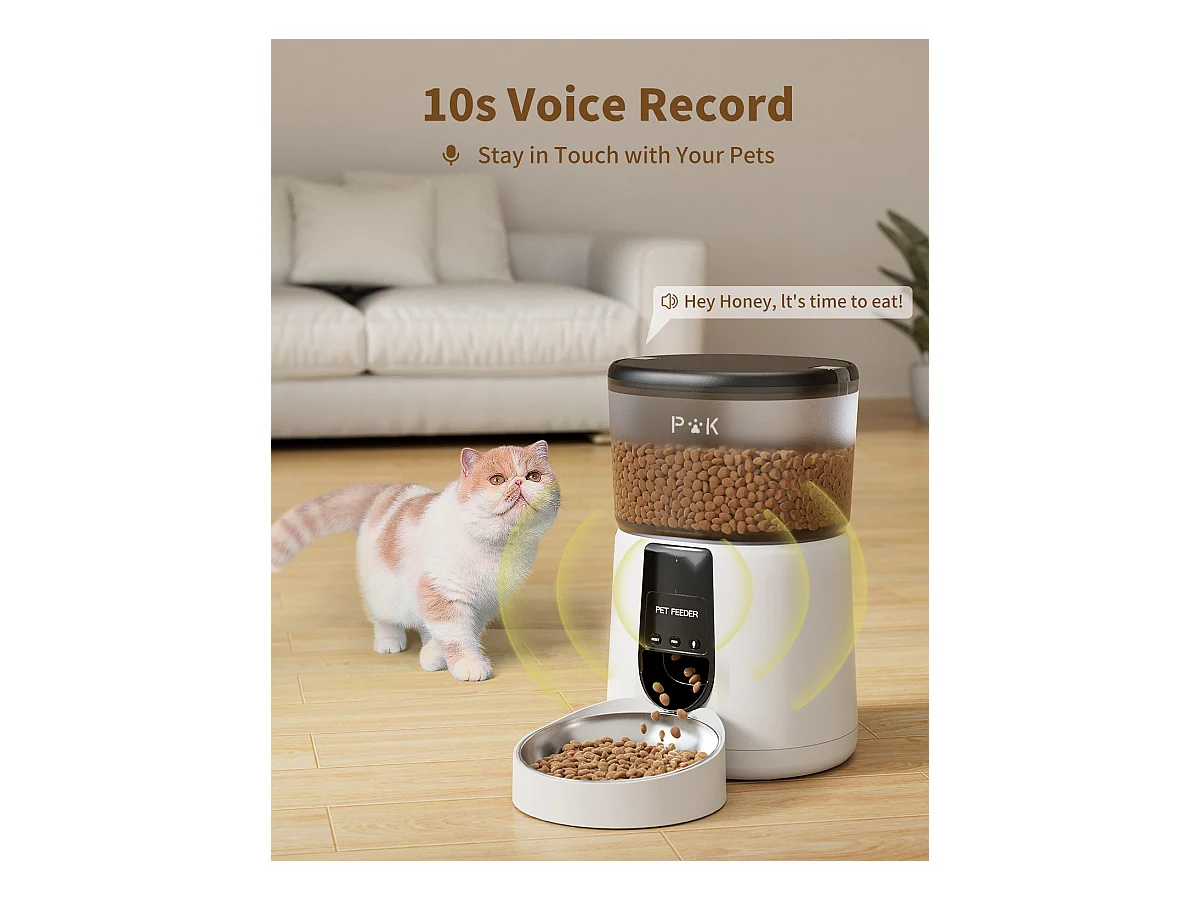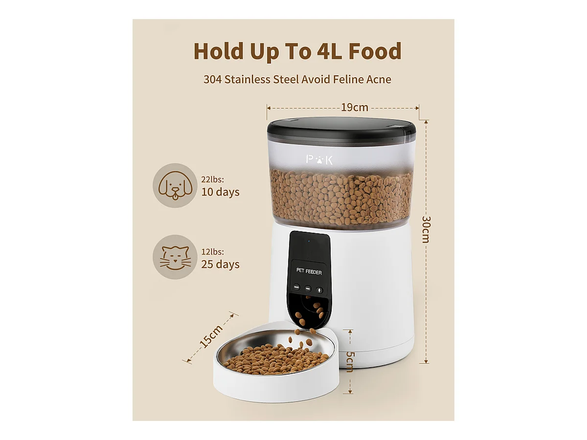 WiFi Automatischer Katzenfutterspender mit App, 4L 2,4G WiFi Katzen- und Hundefutterspender, APP-Steuerung, mit Edelstahlnapf