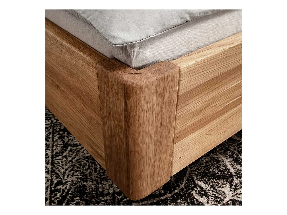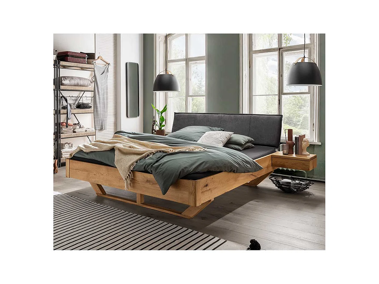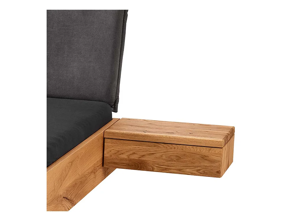 Wildeiche Bett mit Polsterkopfteil in Anthrazit 43 cm Einstiegshöhe