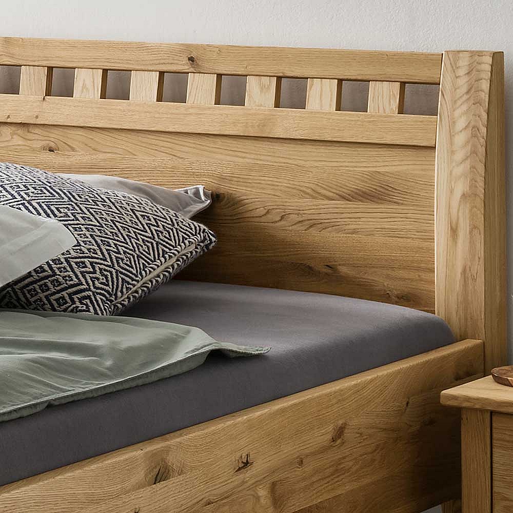 Wildeiche Doppelbett 47 cm Einstiegshöhe zwei Nachtkommoden (dreiteilig)