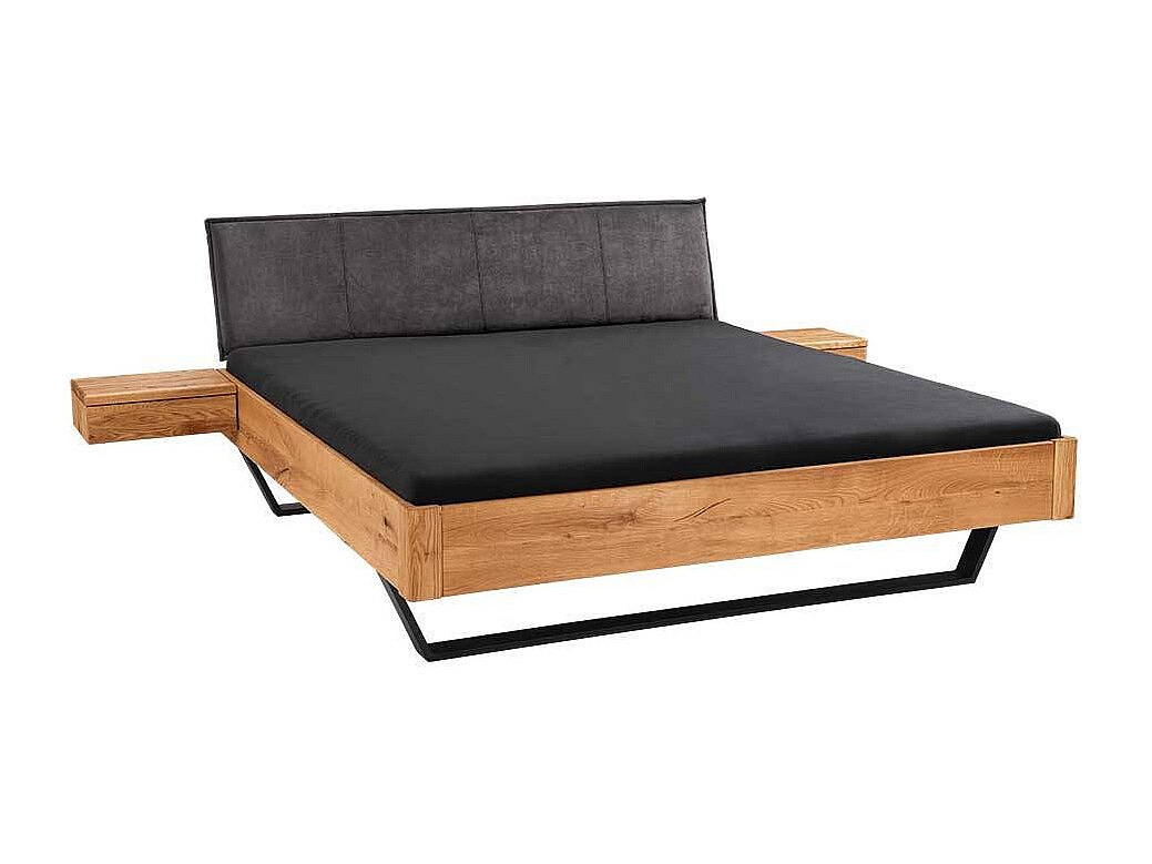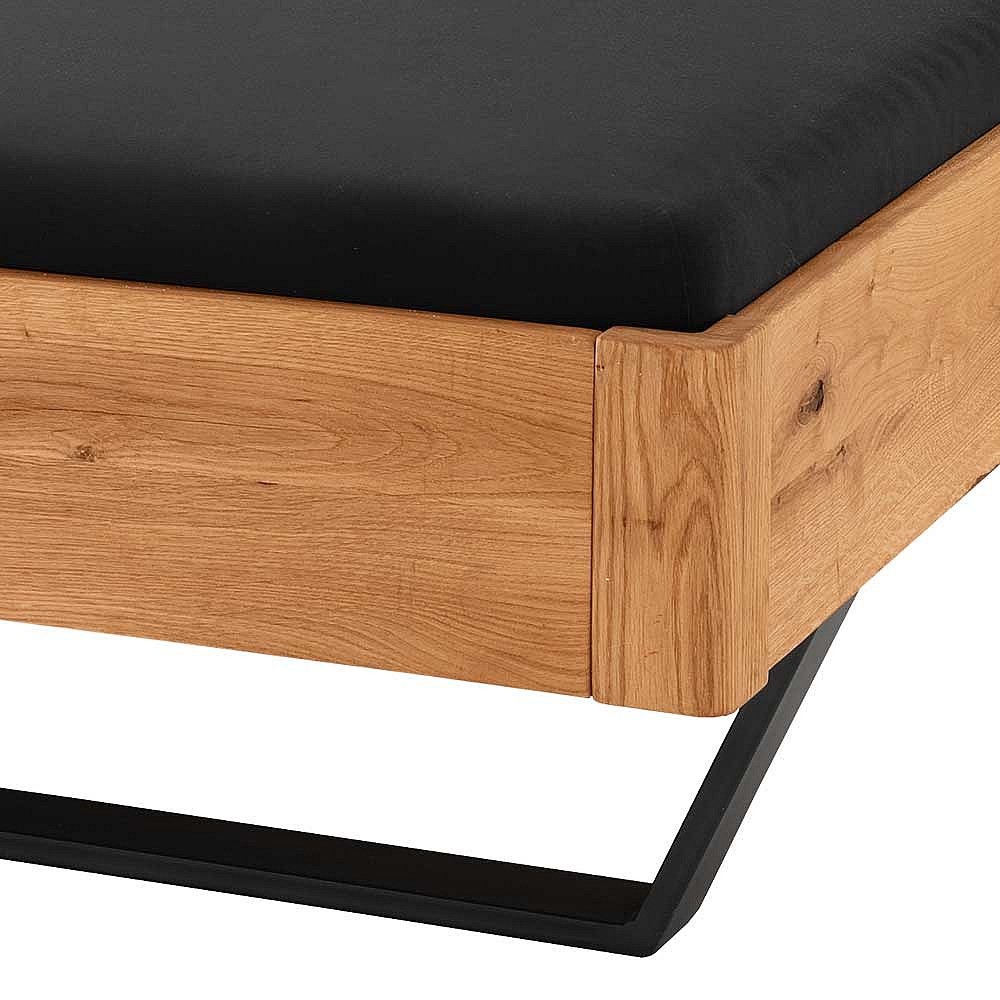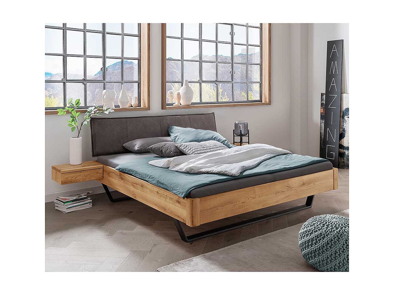 Wildeiche Massivbett mit Bügelgestell aus Metall Industry und Loft Stil