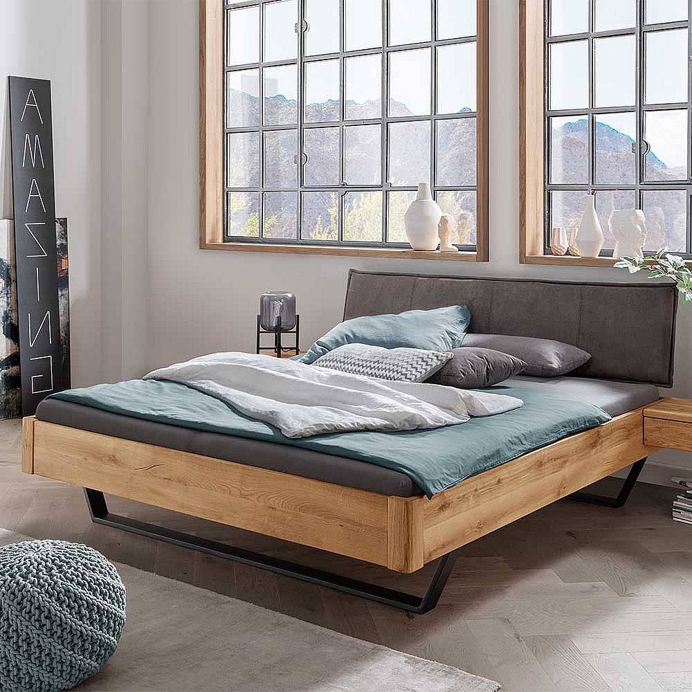 Wildeiche Massivbett mit Bügelgestell aus Metall Industry und Loft Stil