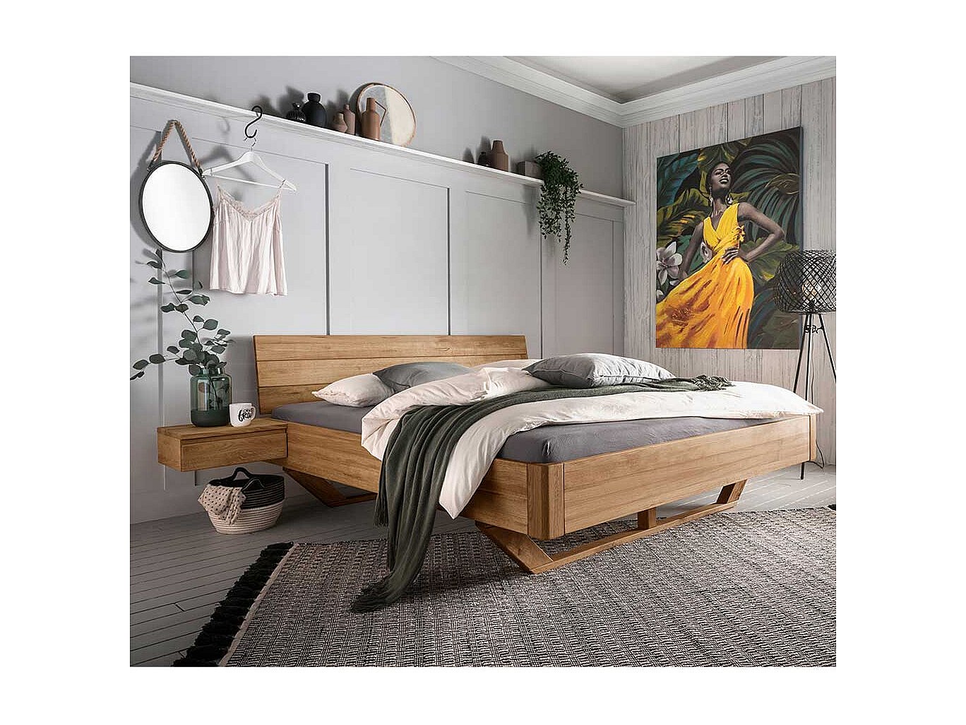 Wildeiche Massivholz Bett 43 cm Einstiegshöhe Holz Kufen