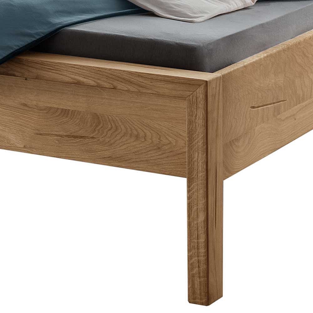Wildeiche Massivholzbett in modernem Design 208 cm tief