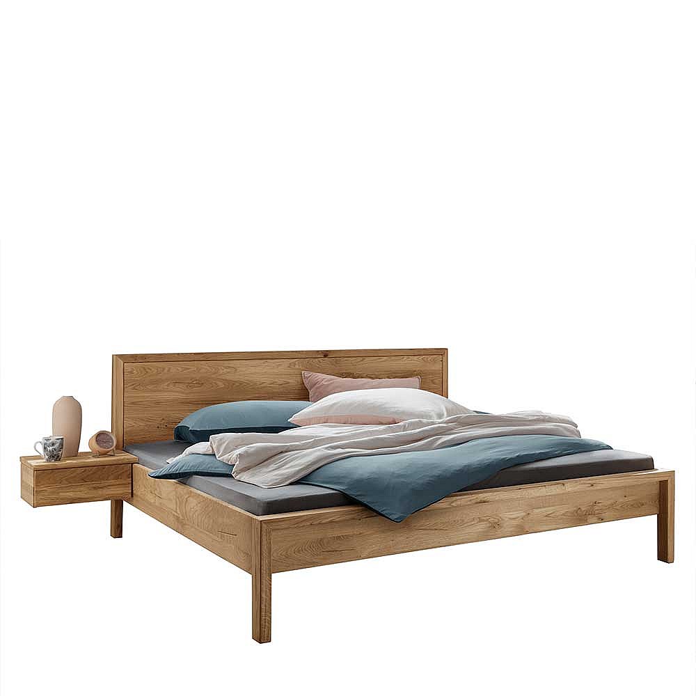 Wildeiche Massivholzbett in modernem Design 208 cm tief