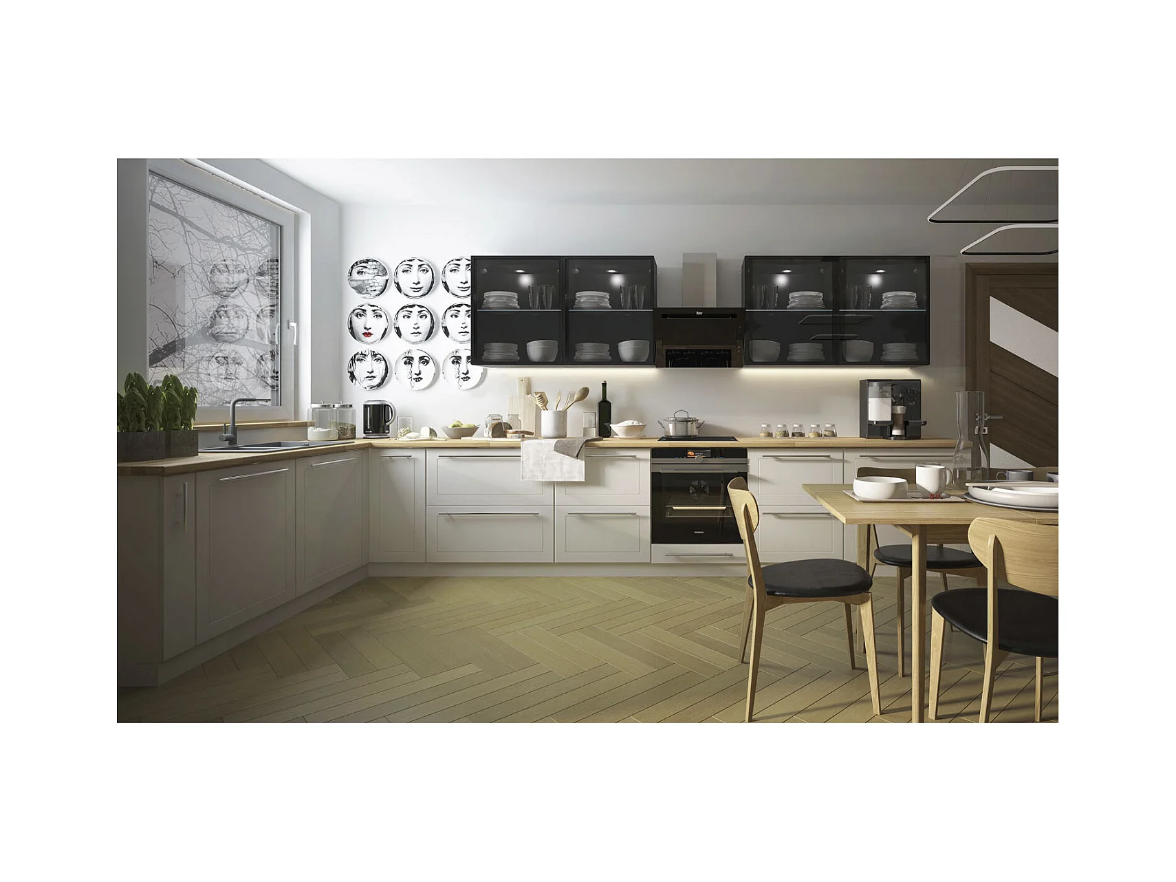 WINKELKÜCHE Kvantum weiß / weiß matt & schwarz 13-teilig