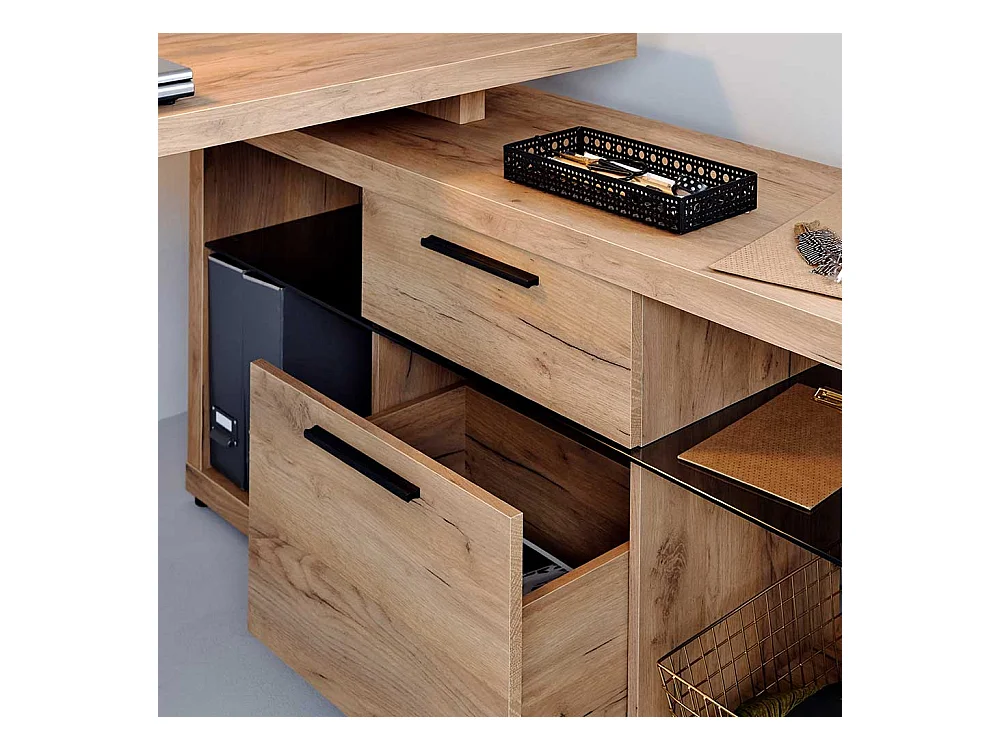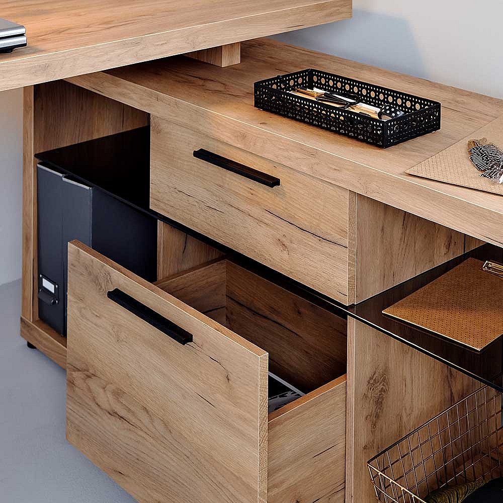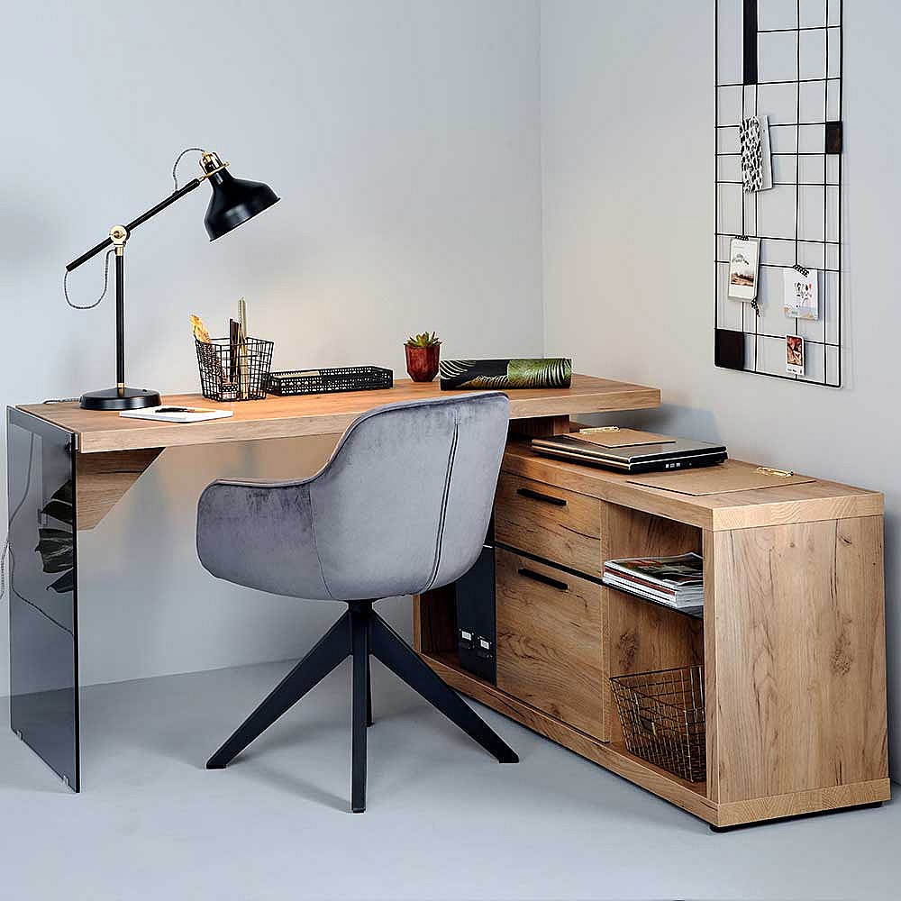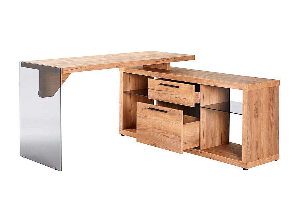 Winkelschreibtisch in Eichefarben Sicherheitsglas