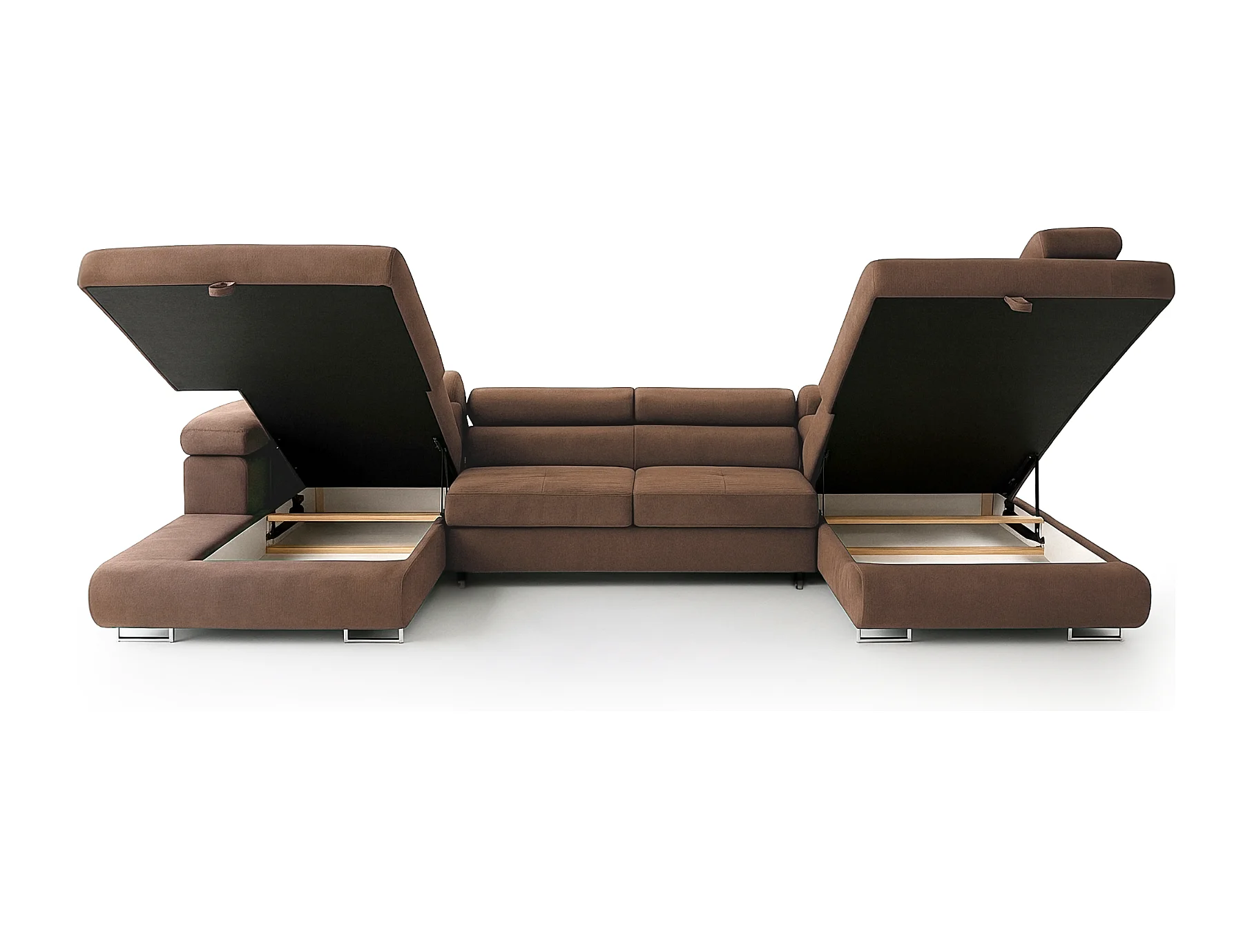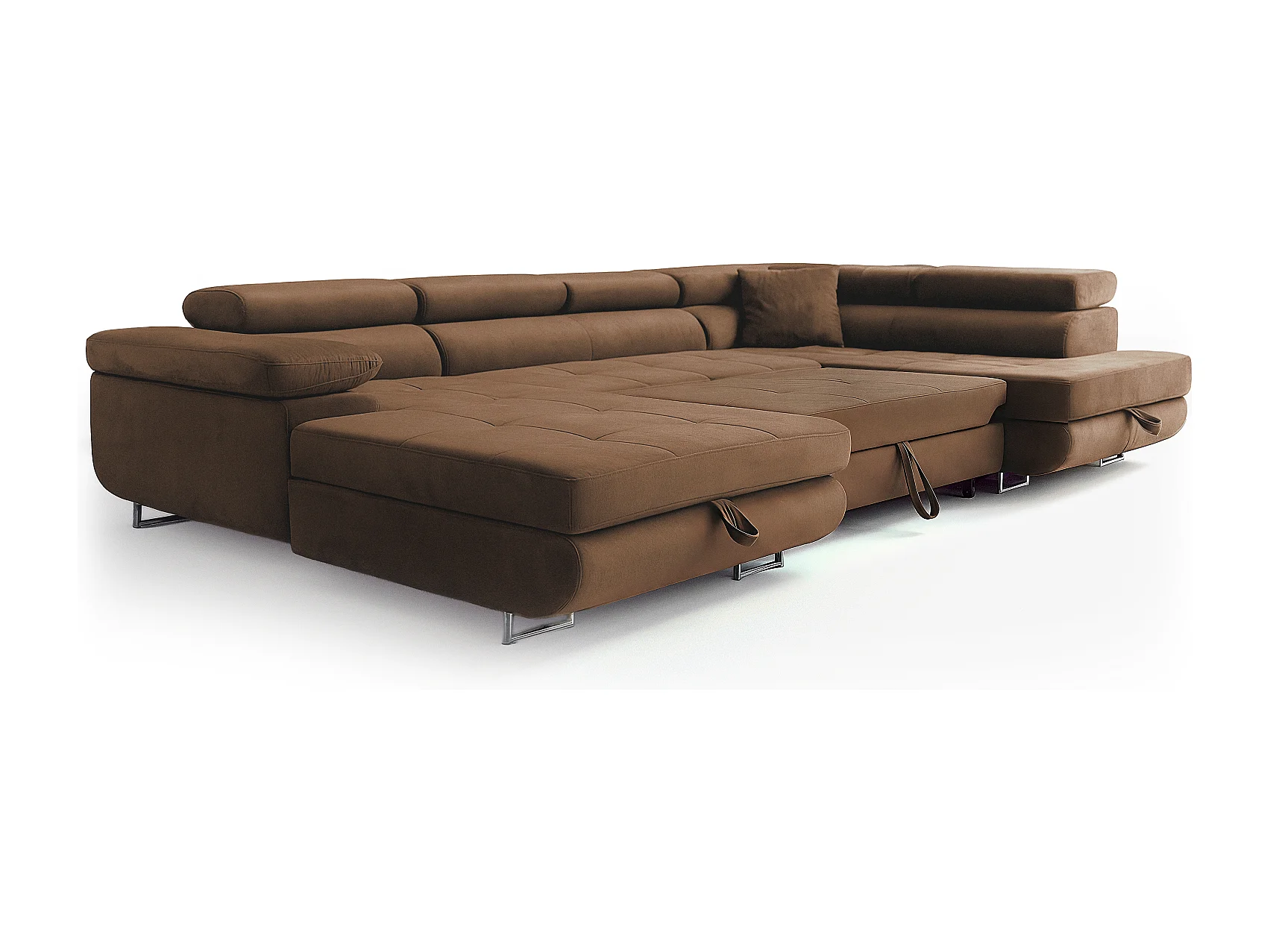Wohnlandschaft Aller U Monolith XXL-Ecksofa mit Schlaffunktion und zwei Bettkästen in Hellbraun, rechte Seite