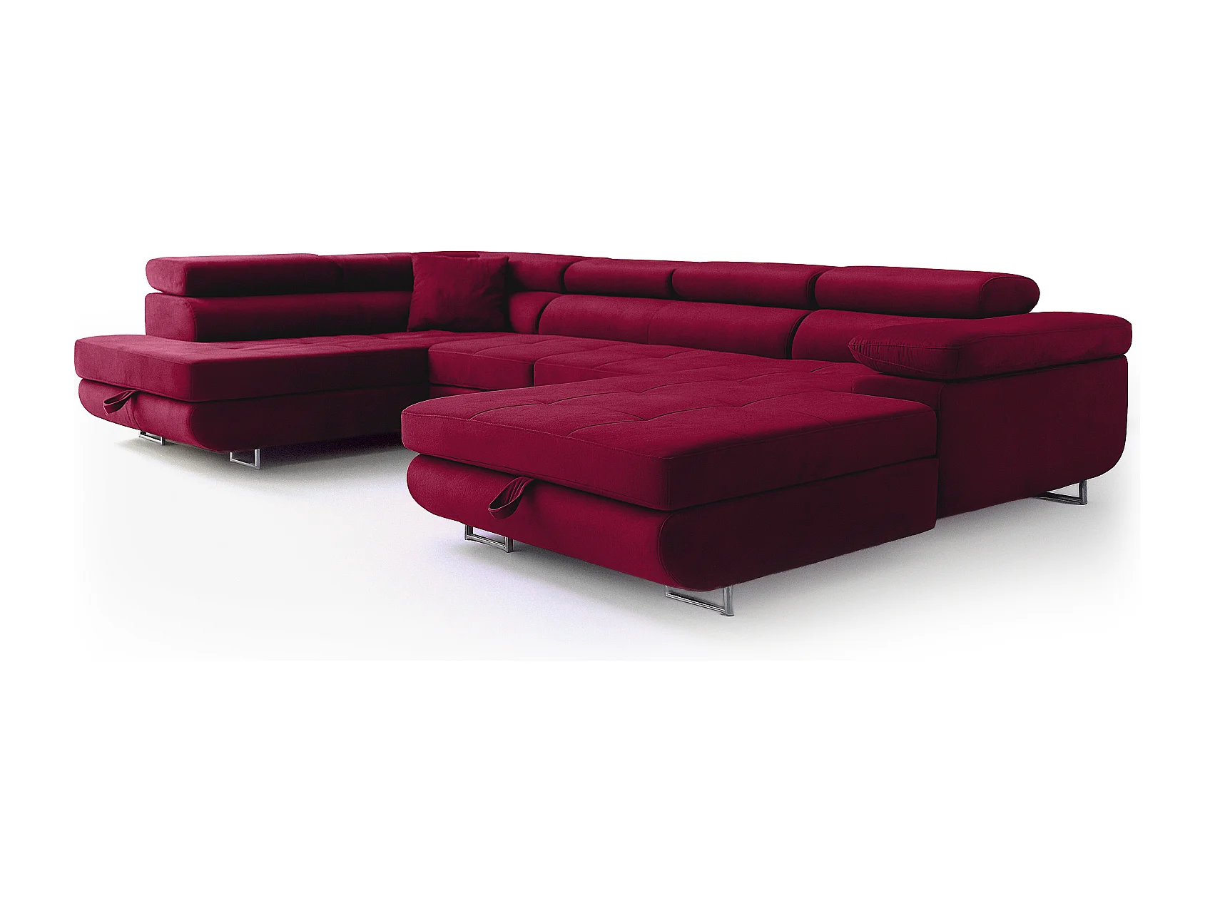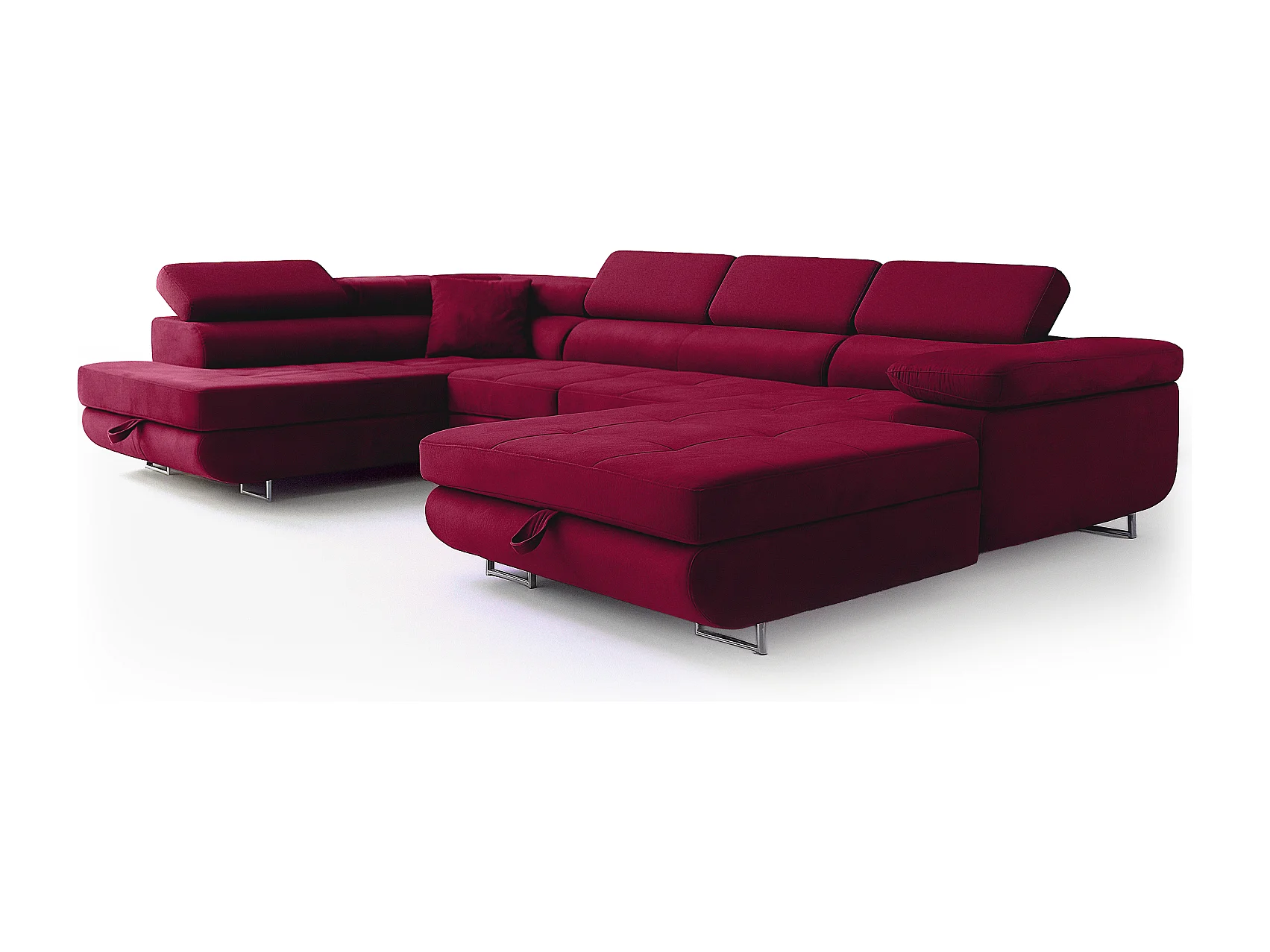 Wohnlandschaft Aller U Monolith XXL-Ecksofa mit Schlaffunktion und zwei Bettkästen in Rot, linke Seite