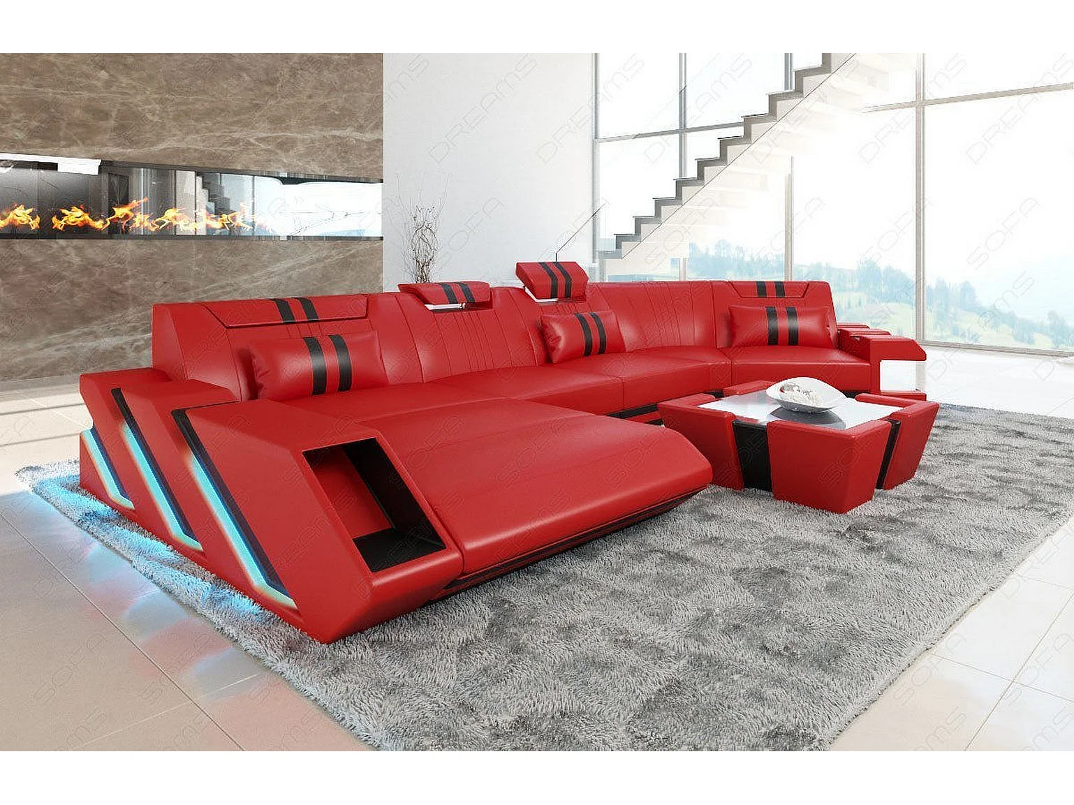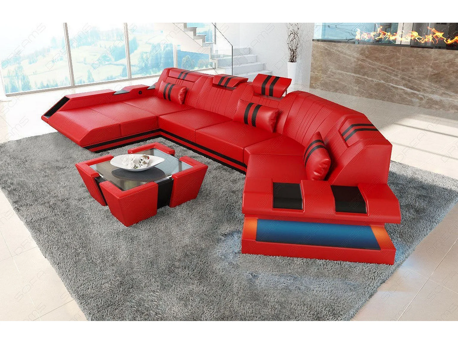 Ledersofa Apollonia C Form Premium Kunstleder Rot Schwarz Links