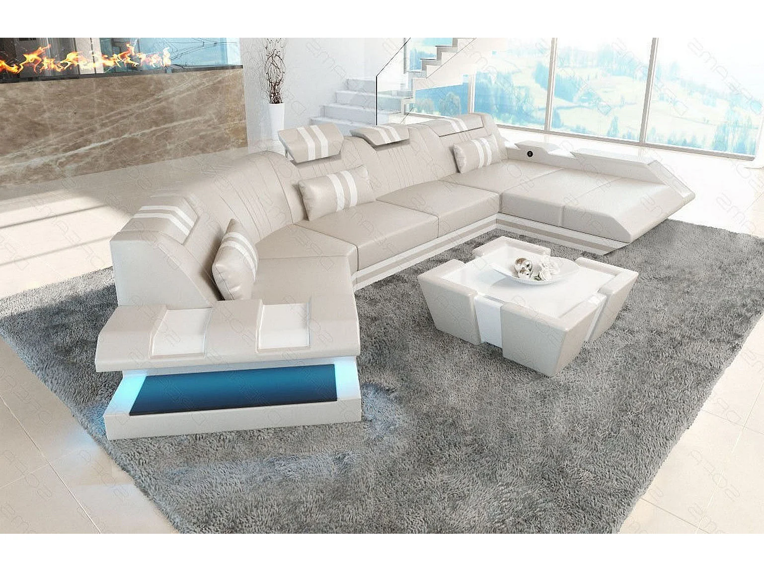 Ledersofa Apollonia C Form Ledermix Echt/Kunstleder Beige Weiß Rechts