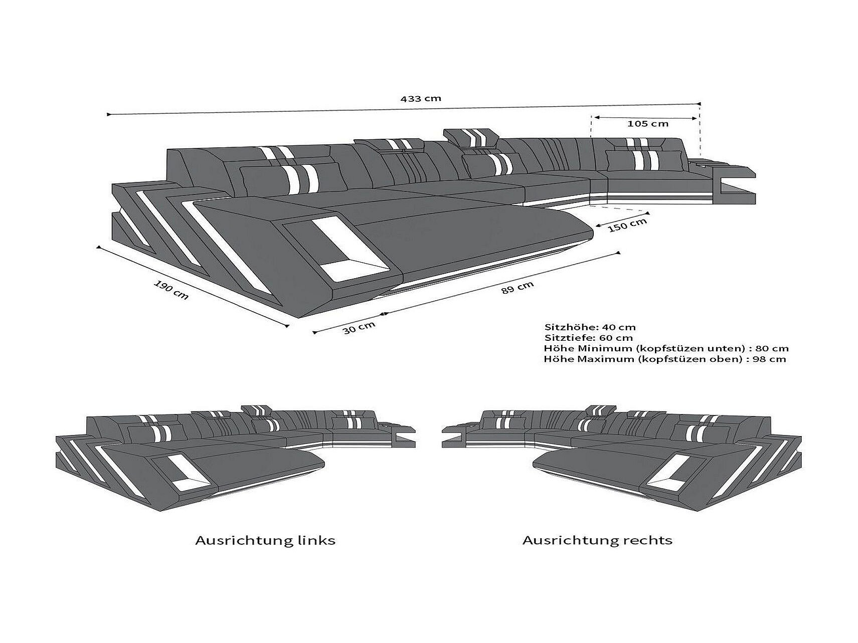 Ledersofa Apollonia C Form Premium Kunstleder Grau Weiß Links