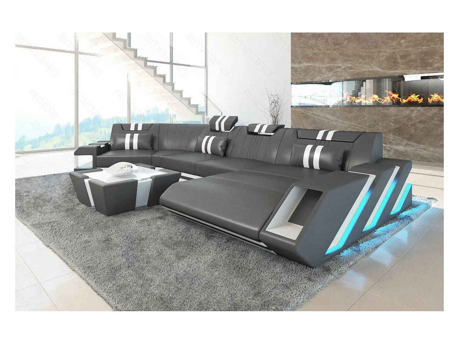 Ledersofa Apollonia C Form Premium Kunstleder Grau Weiß Rechts