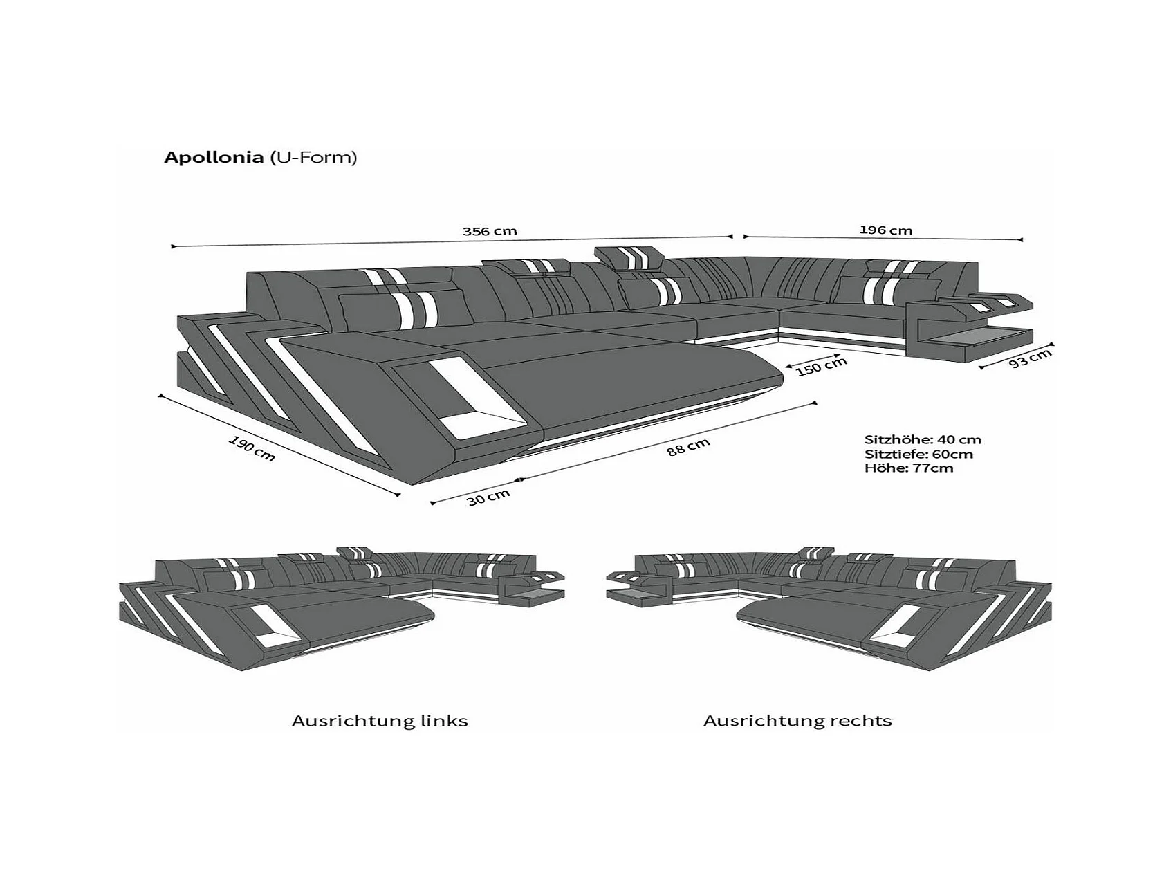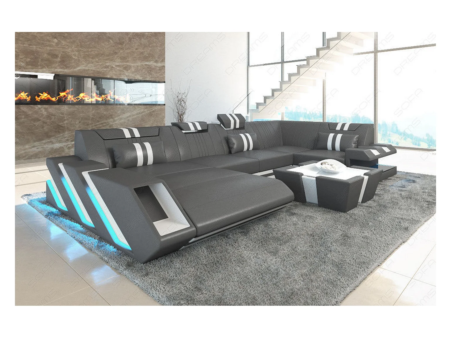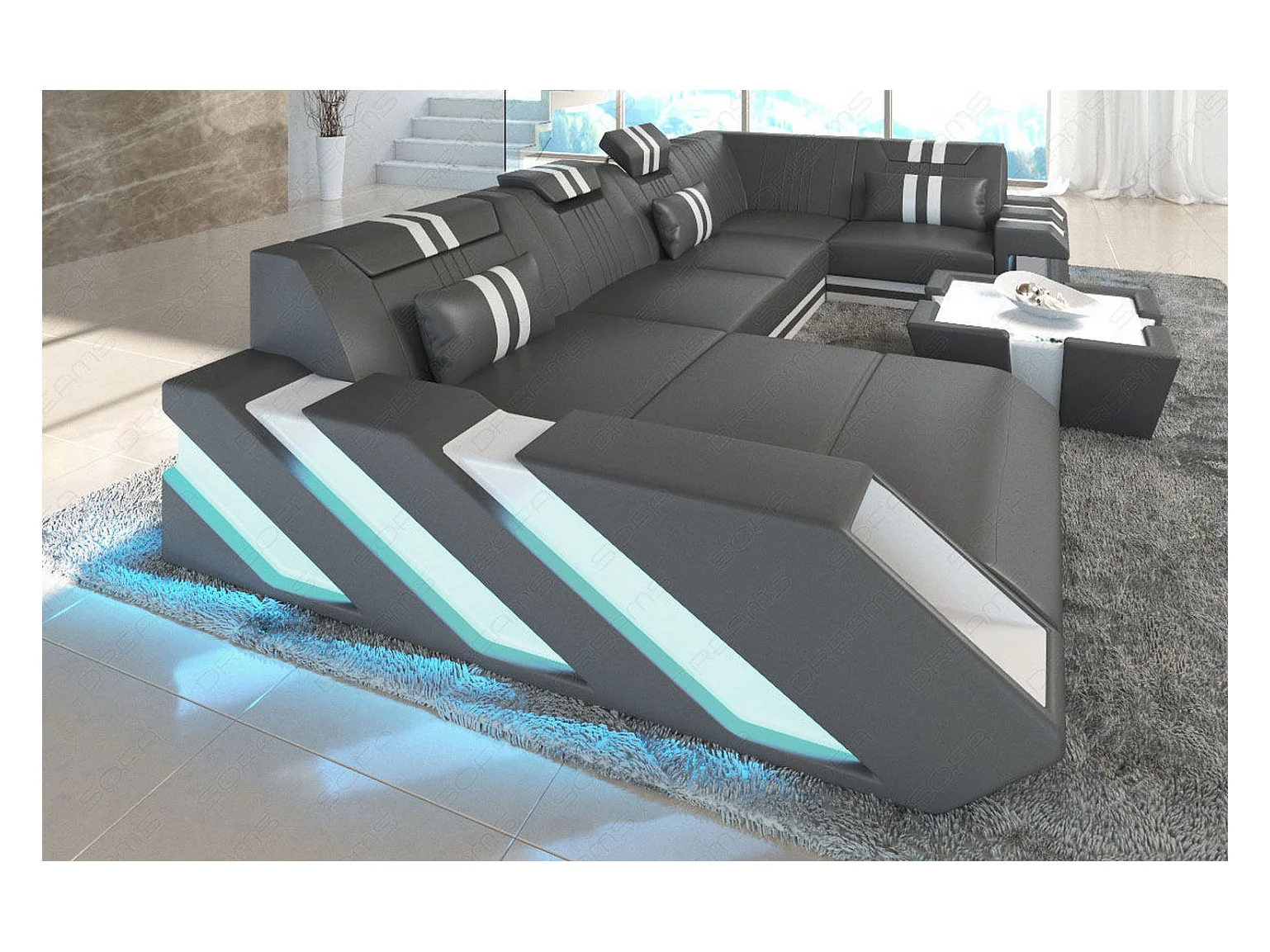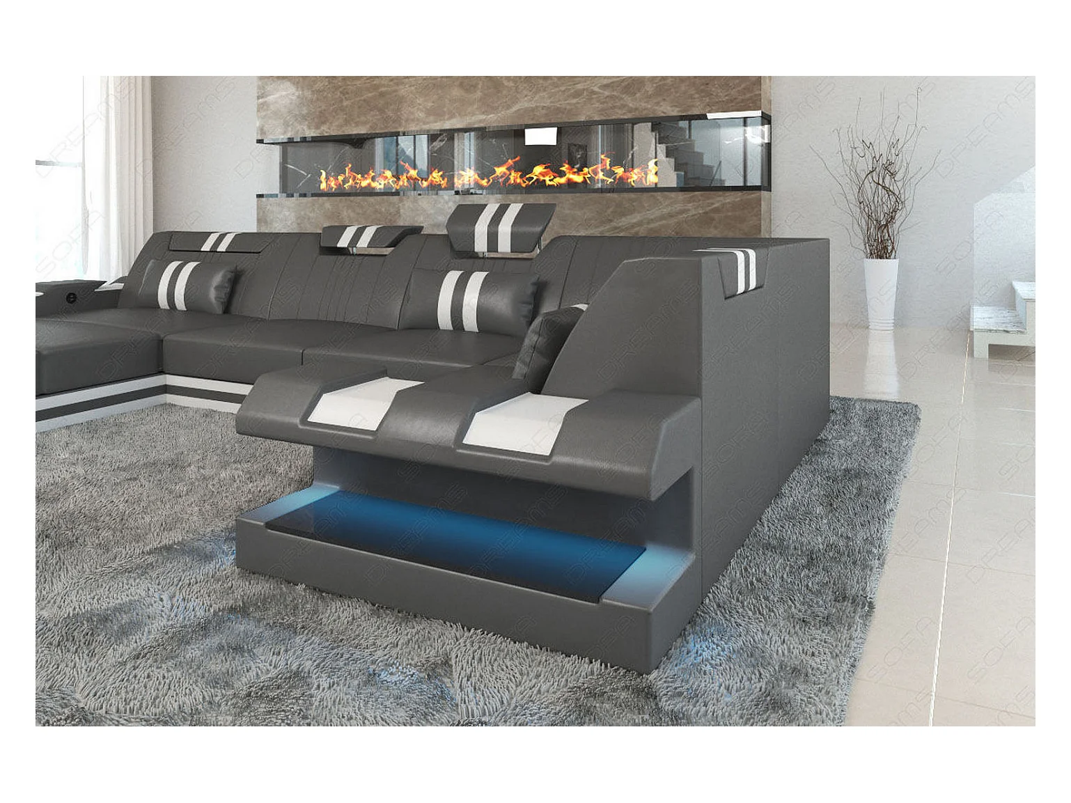 Ledersofa Apollonia U Form KP Grau Weiß Links