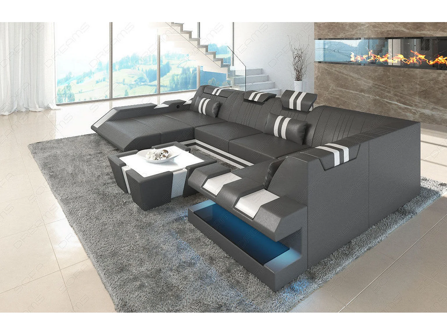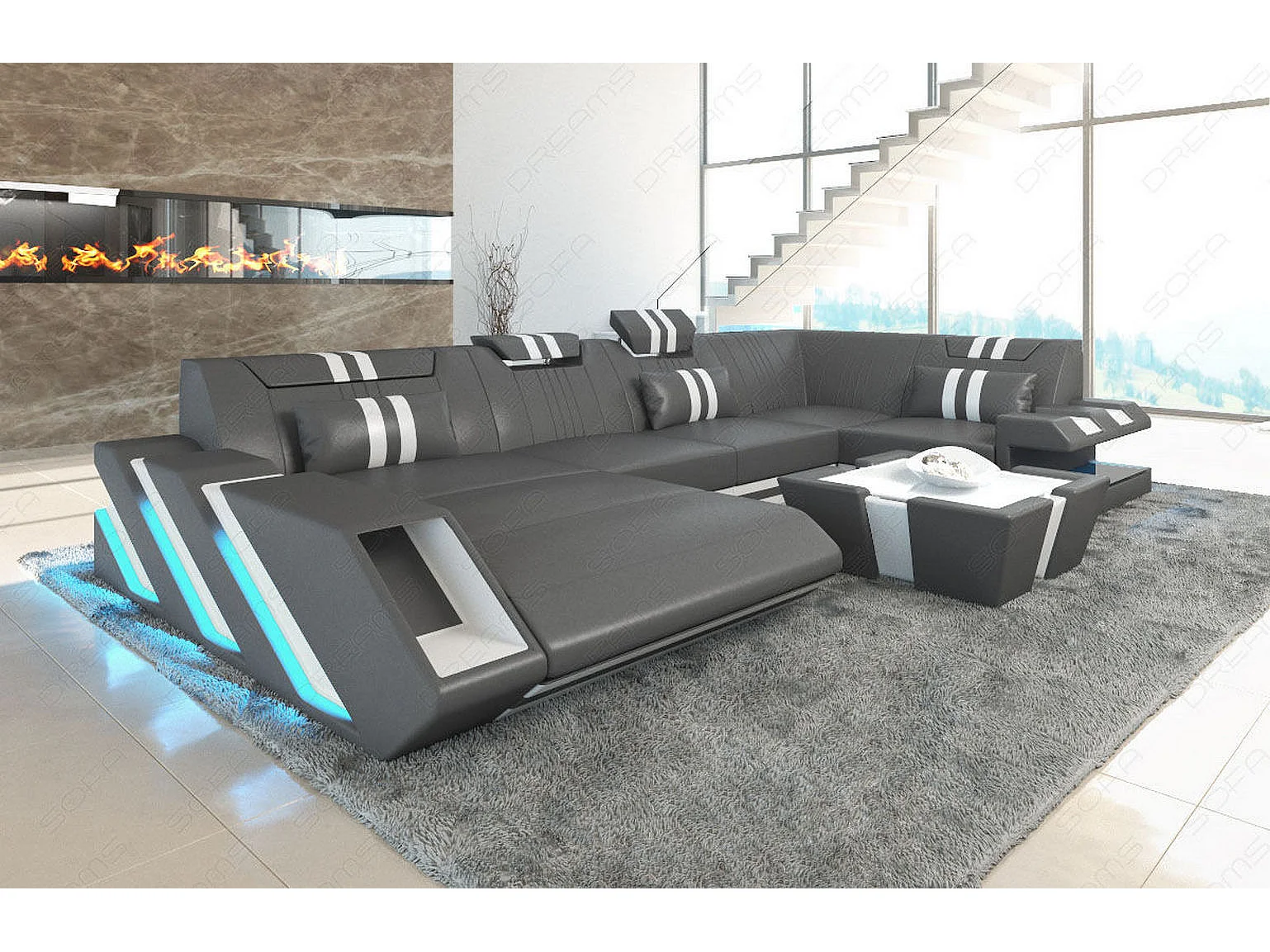 Ledersofa Apollonia U Form EM Grau Weiß Links