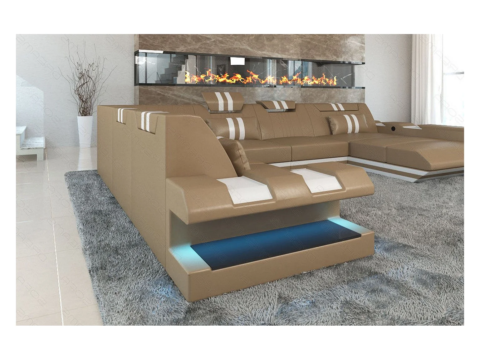 XXL Leder Wohnlandschaft Apollonia EM Sandbeige Weiß Rechts