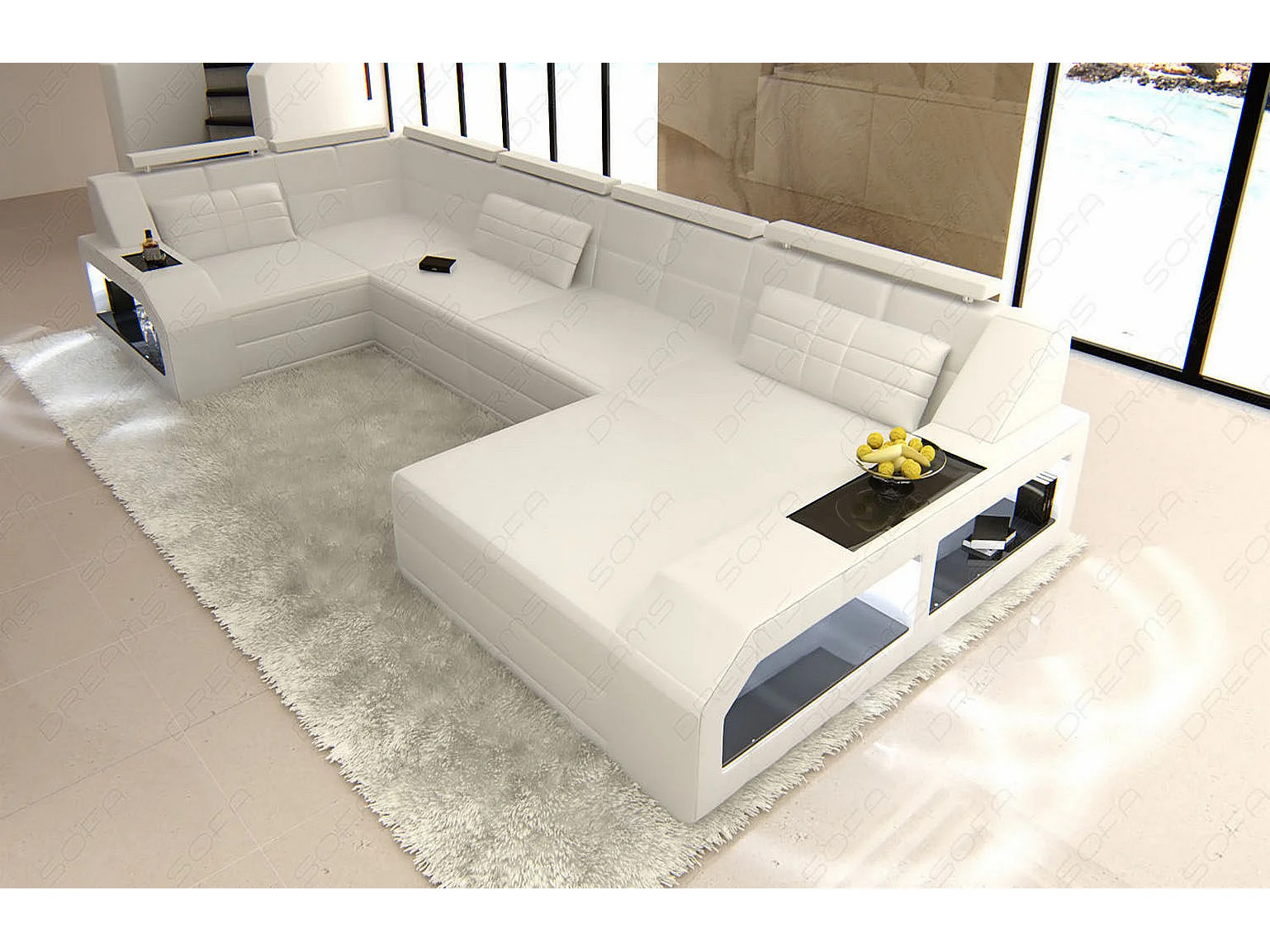 Sofa Arezzo U Leder Ledermix Weiß Rechts