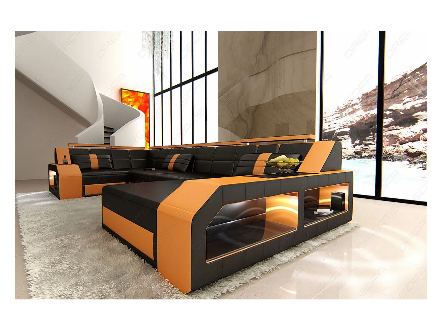Sofa Arezzo U Leder Ledermix Schwarz Orange Rechts