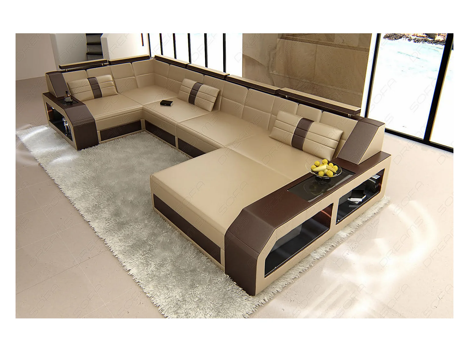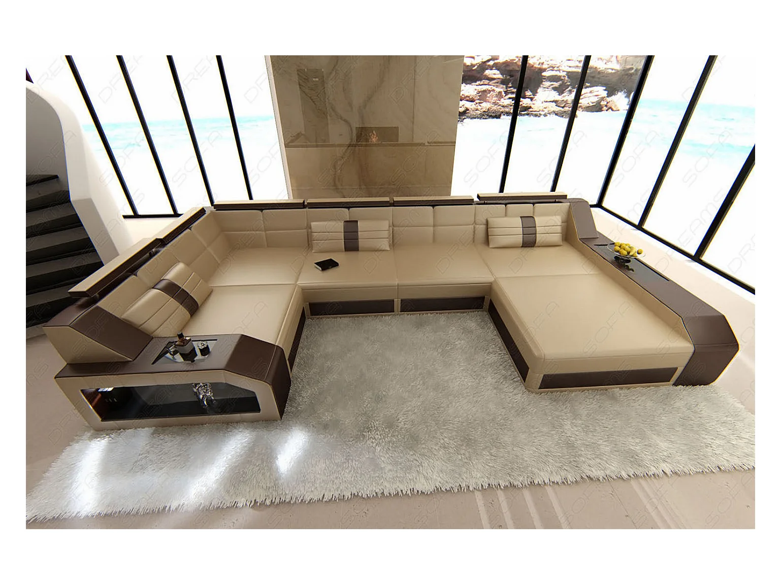 Sofa Arezzo U Leder Ledermix Sandbeige Braun Rechts