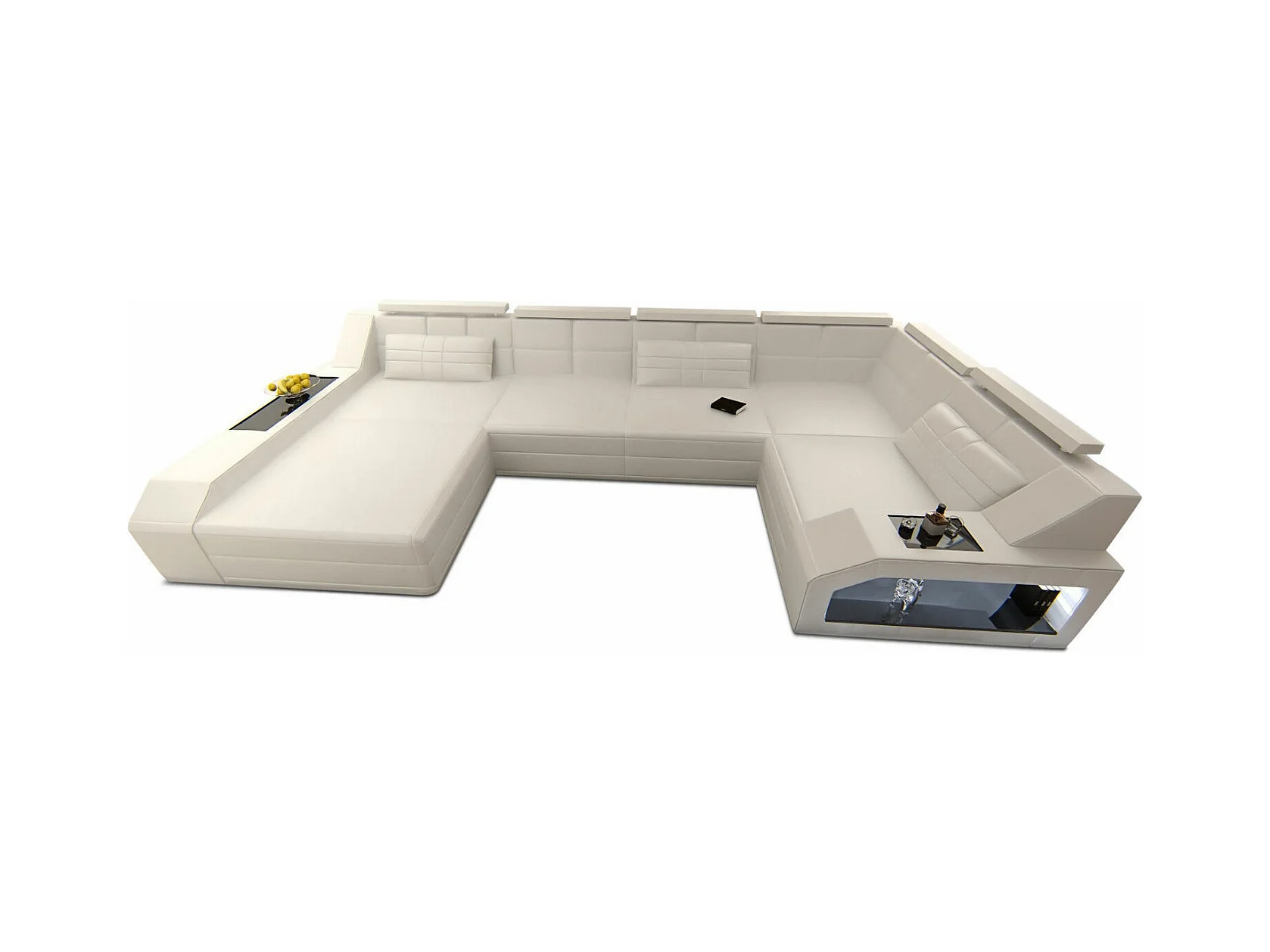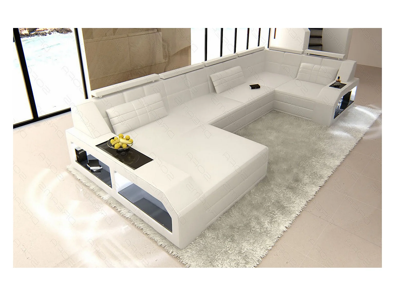 Sofa Arezzo U Leder Kunstleder Weiß Links