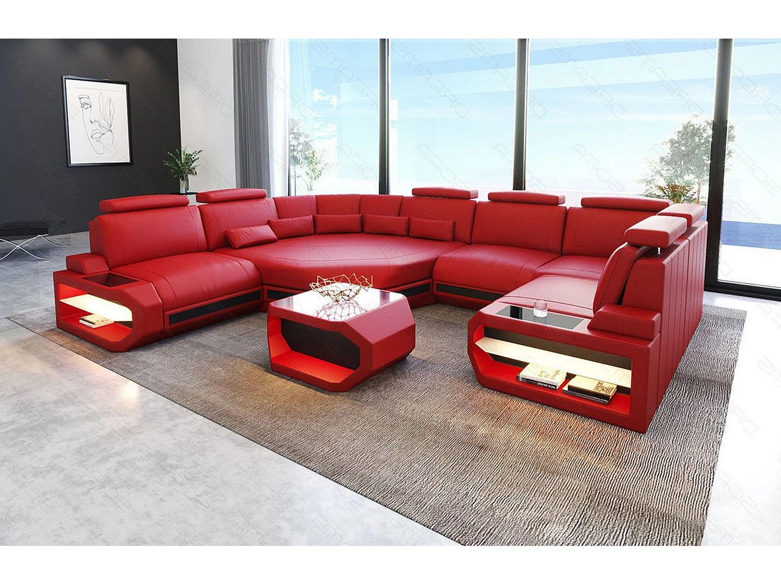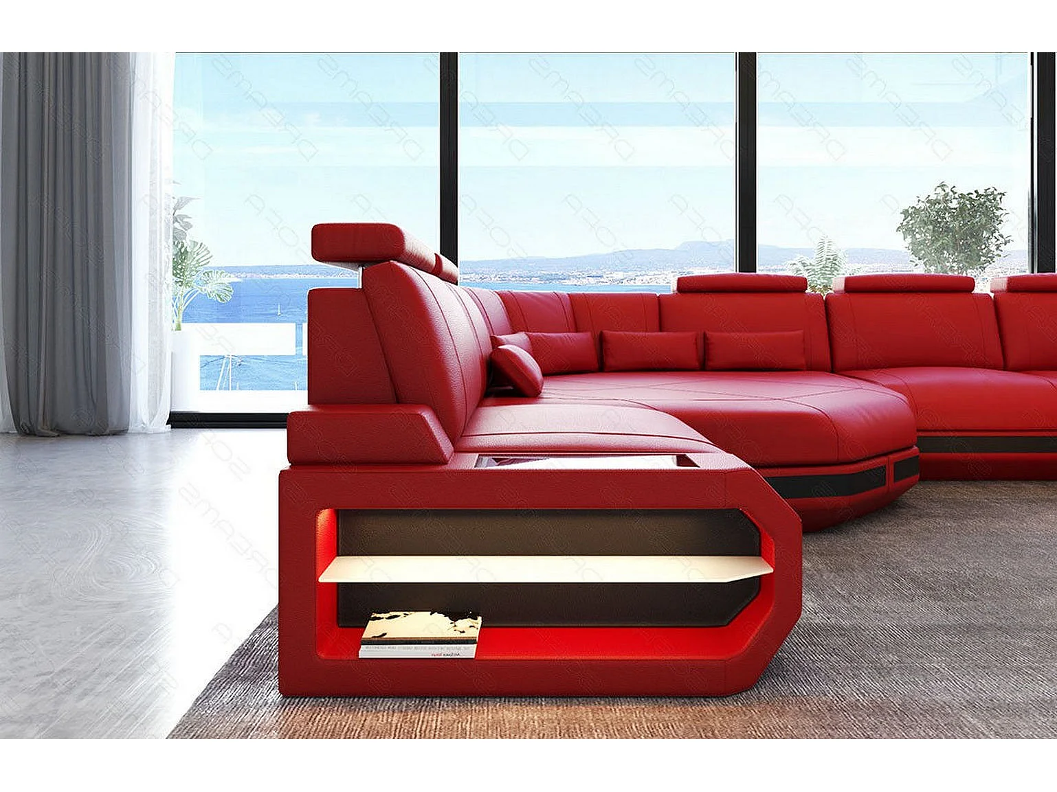 Mini Sofa Asti U Leder Kunstleder Rot Schwarz Links
