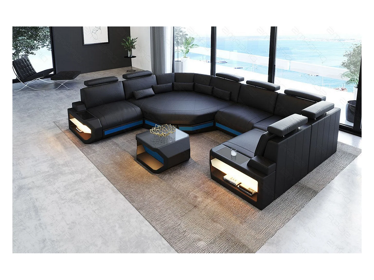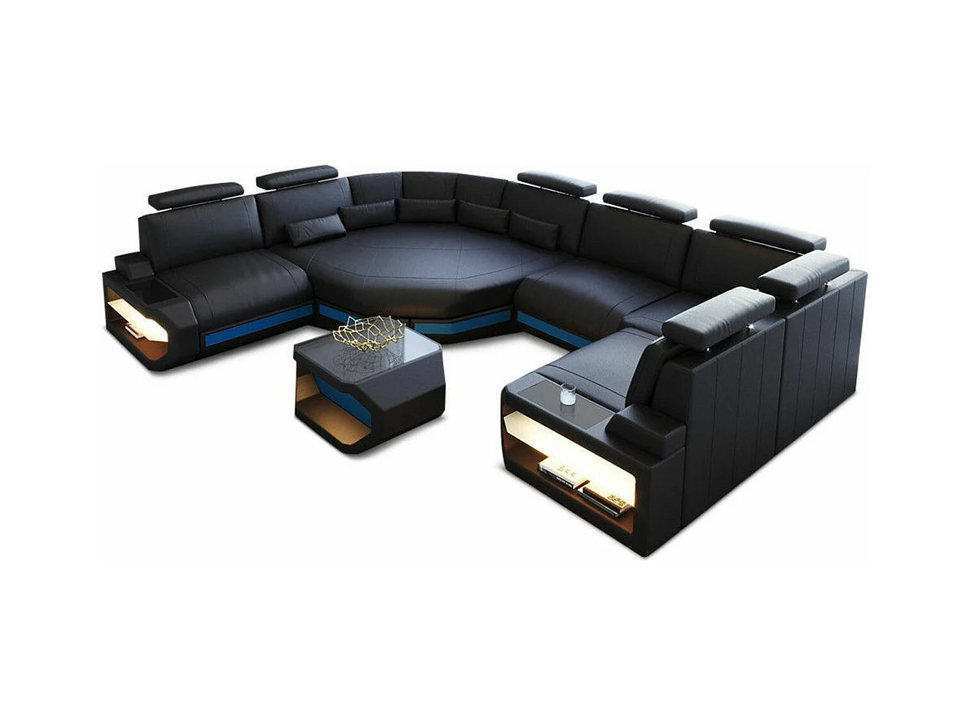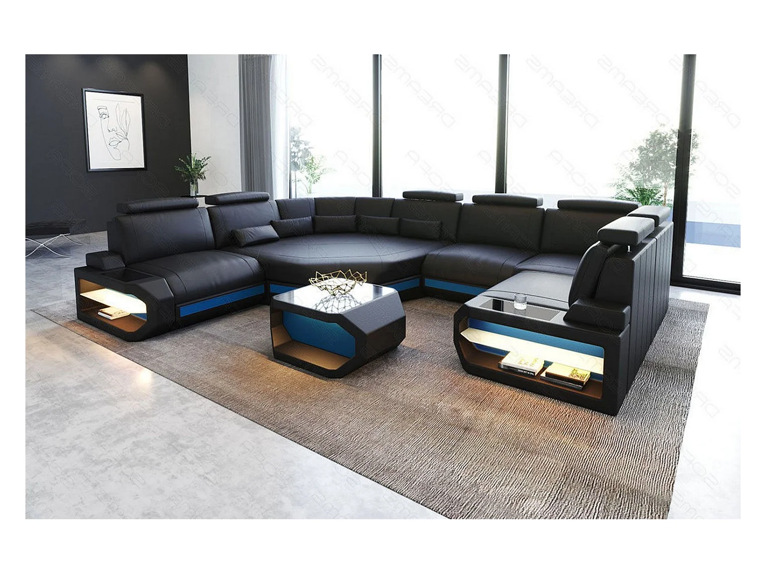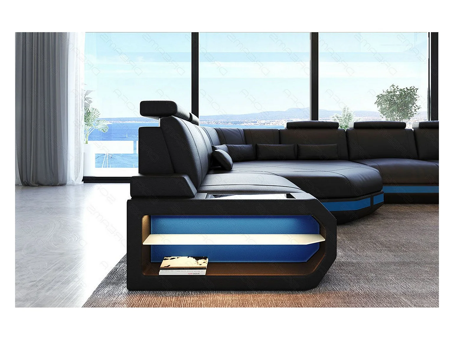 Mini Sofa Asti U Leder Kunstleder Schwarz Blau Links