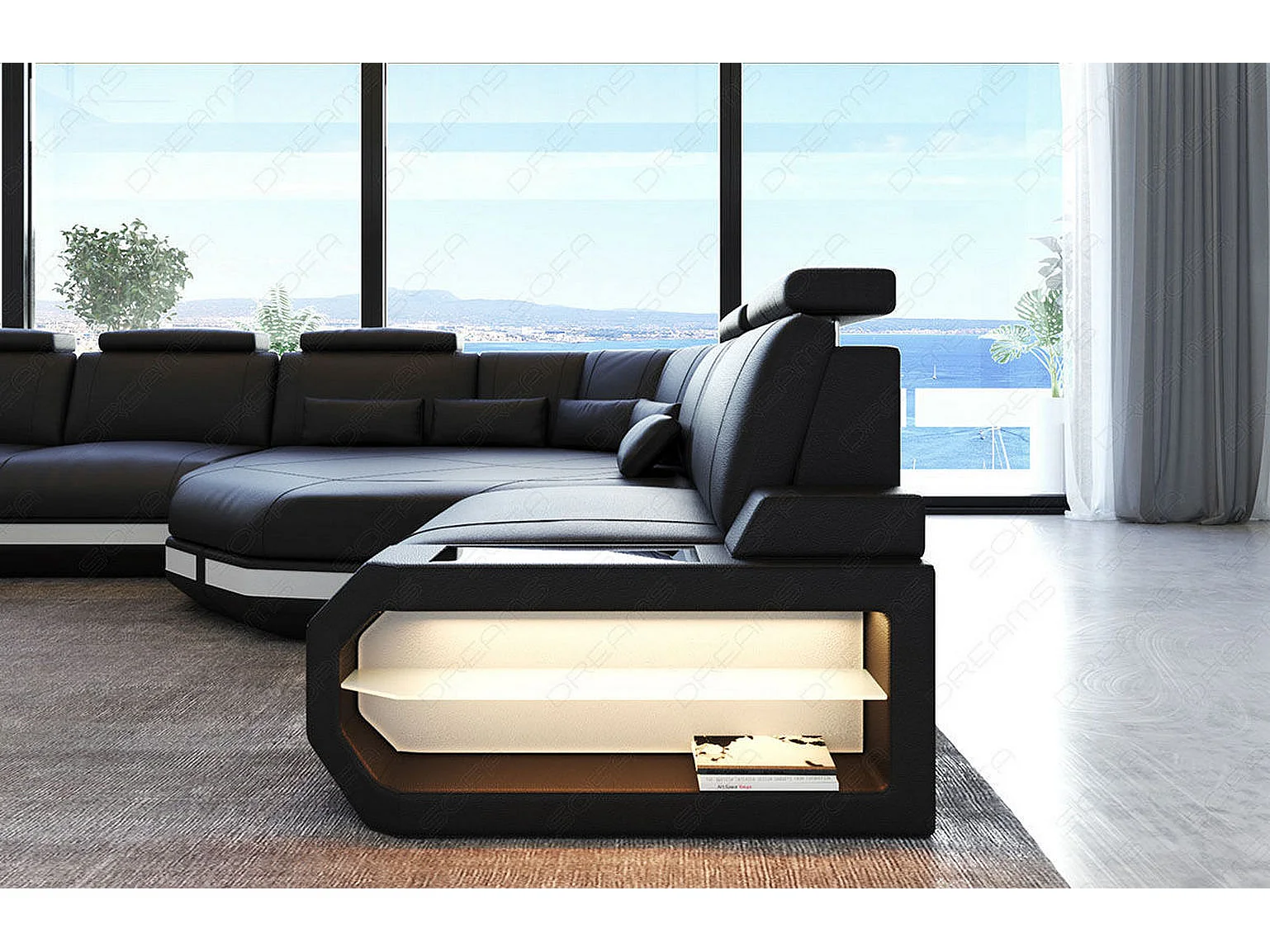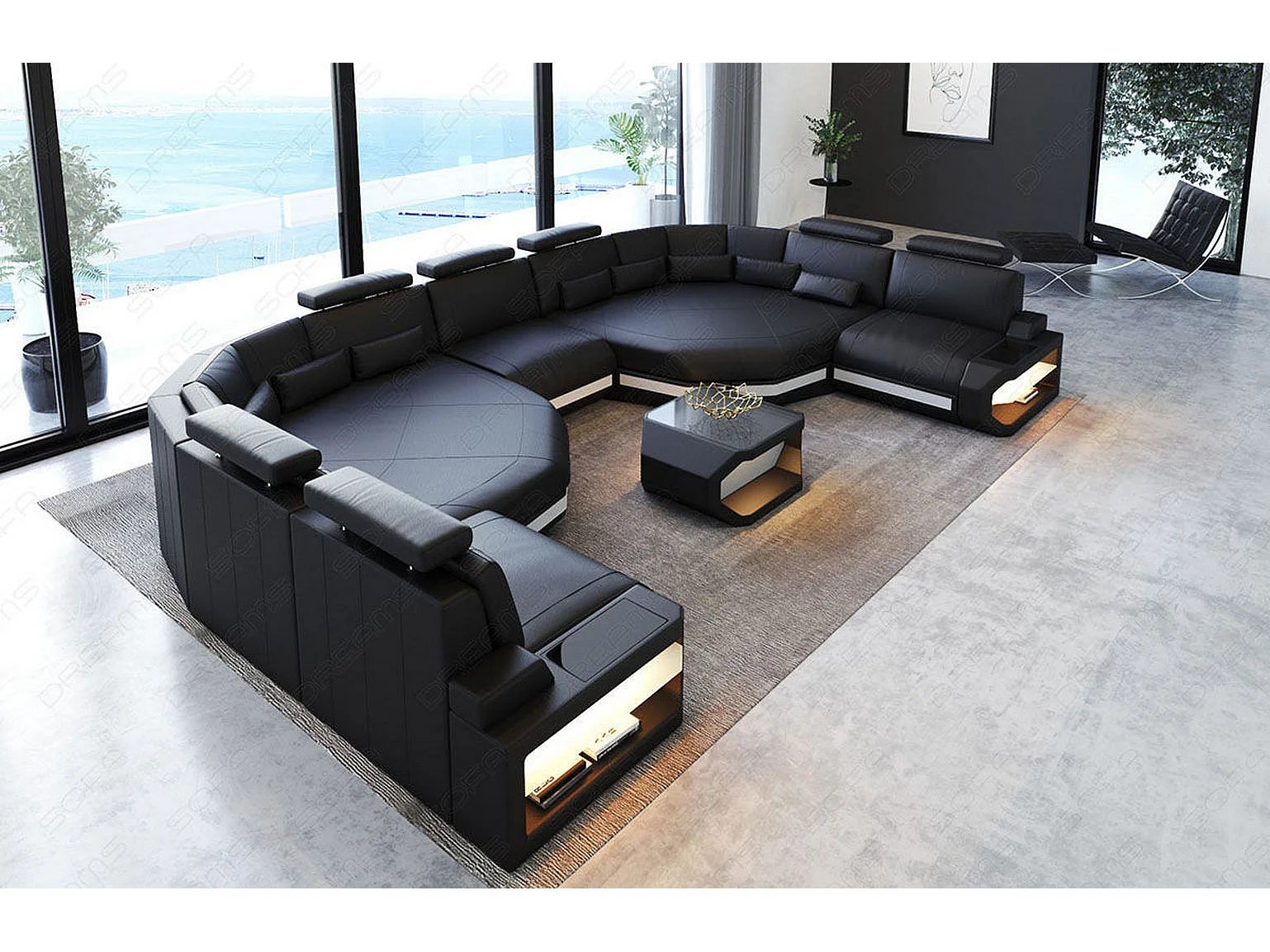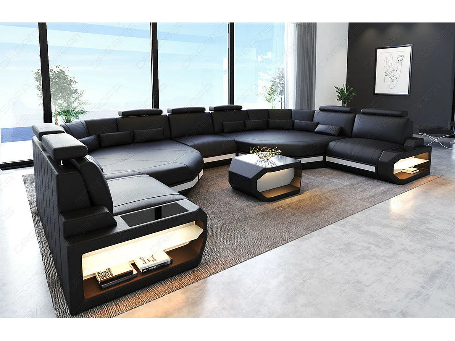 XXL Sofa Asti Leder Ledermix Schwarz Weiß