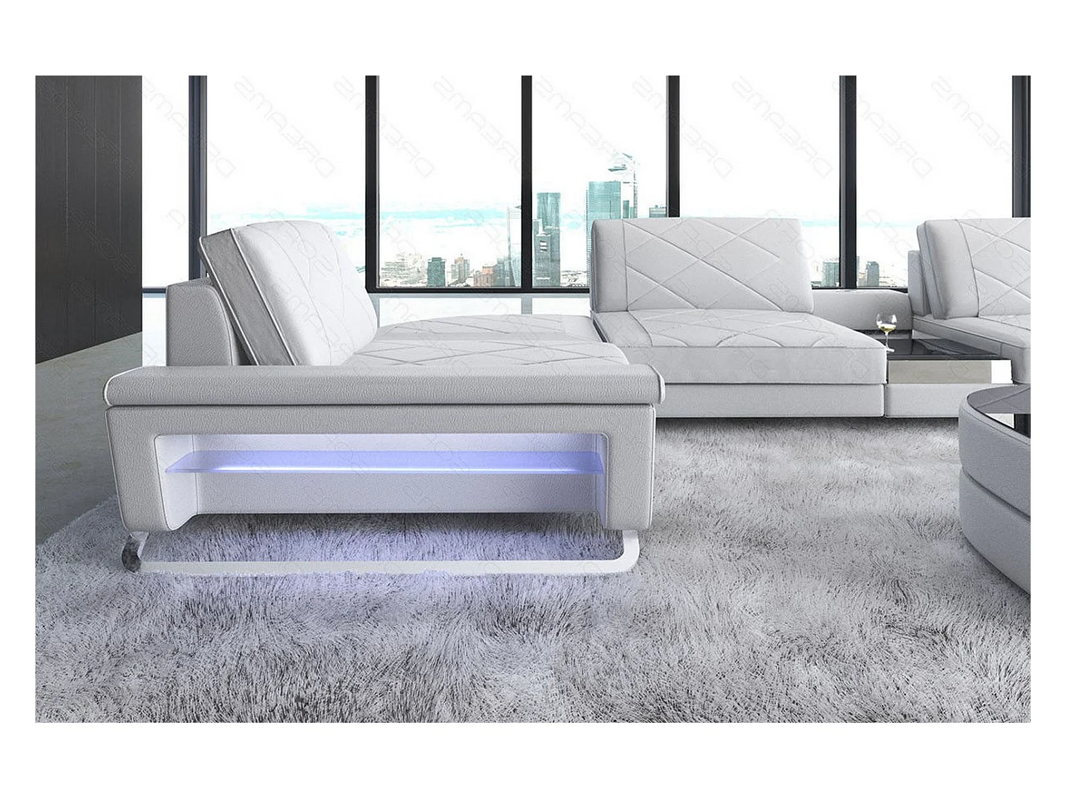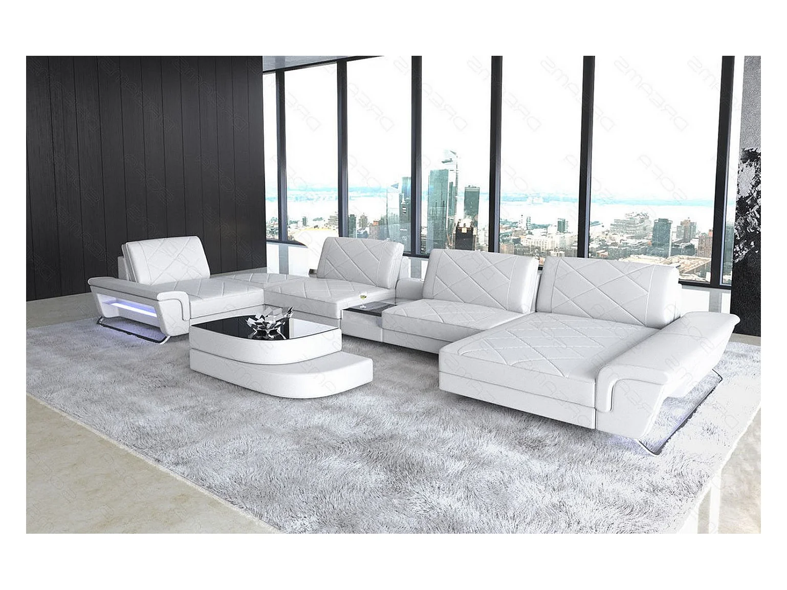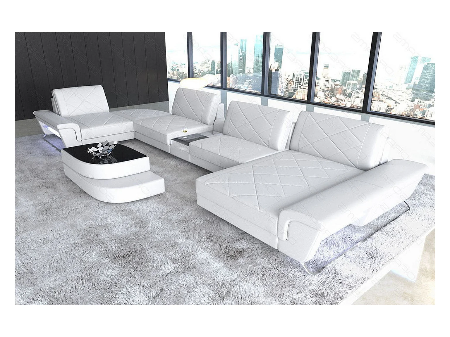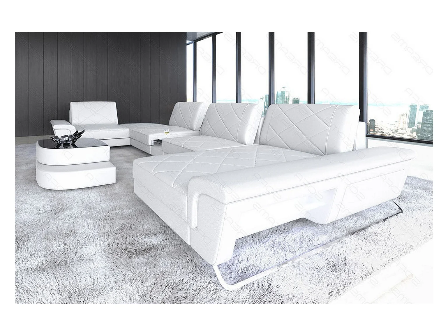 Sofa Bari U Leder Kunstleder Weiß Rechts
