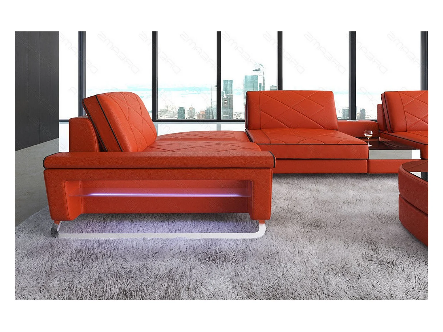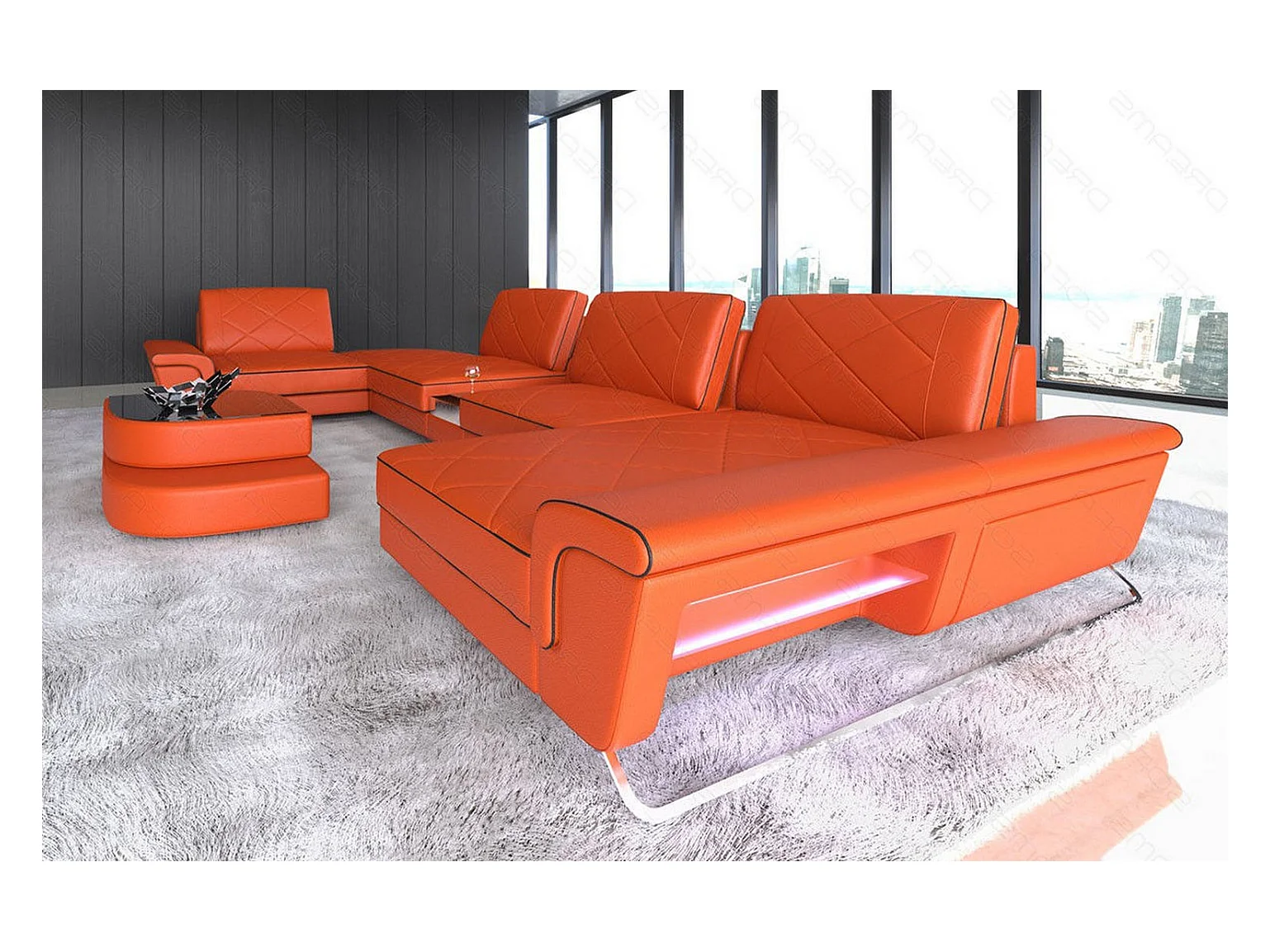 Sofa Bari U Leder Kunstleder Orange Schwarz Rechts