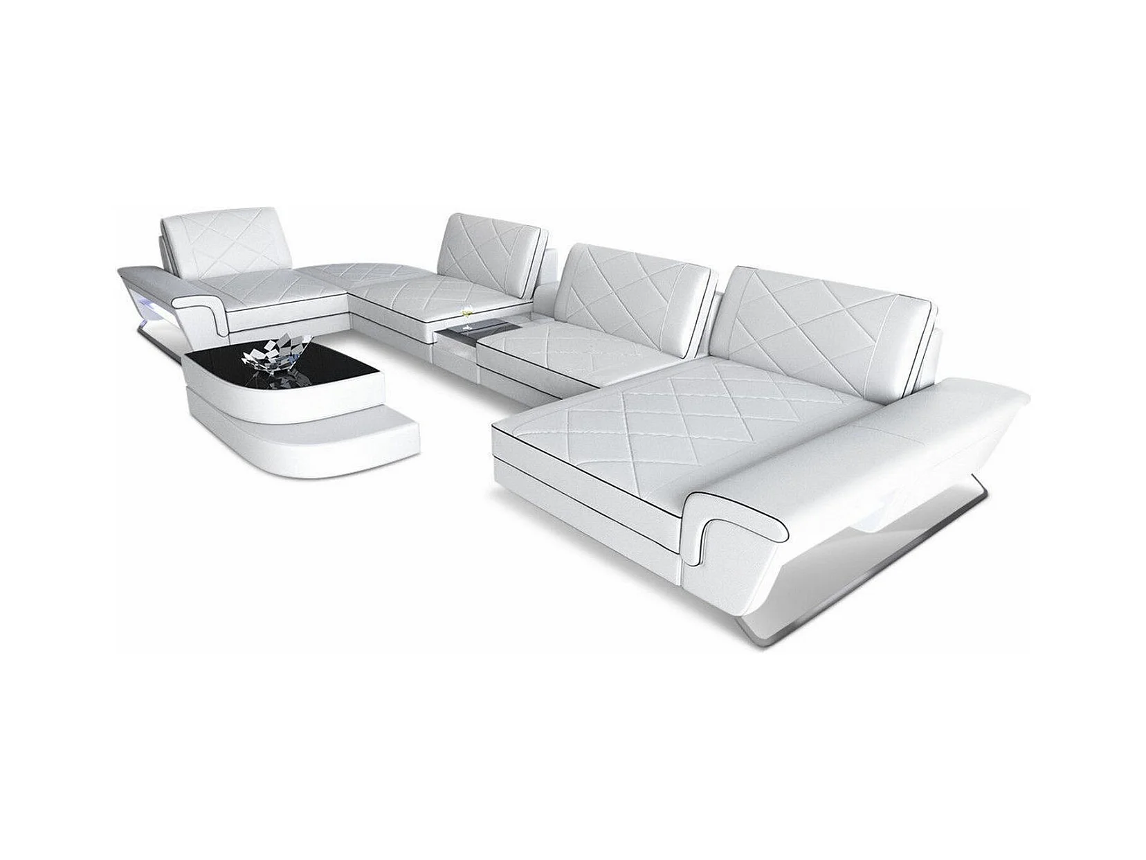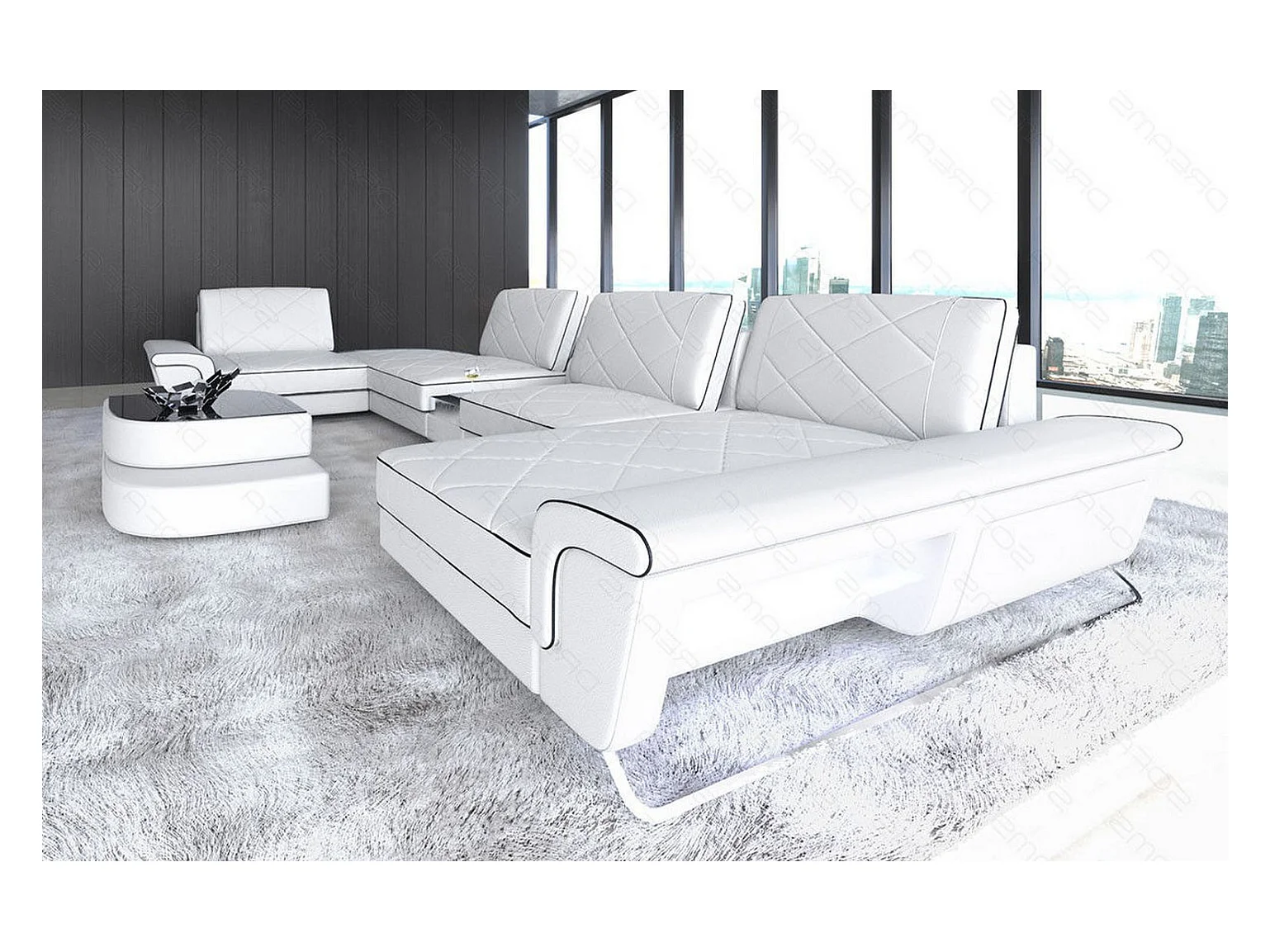 Sofa Bari U Leder Ledermix Weiß Schwarz Rechts