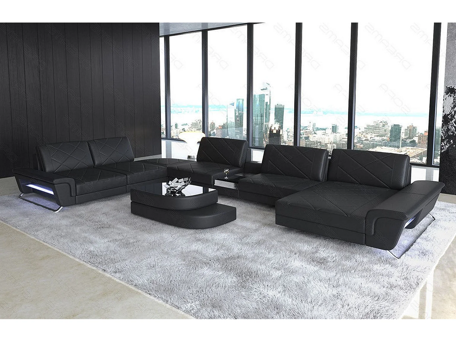 Sofa Bari U XXL Leder Ledermix Schwarz Rechts
