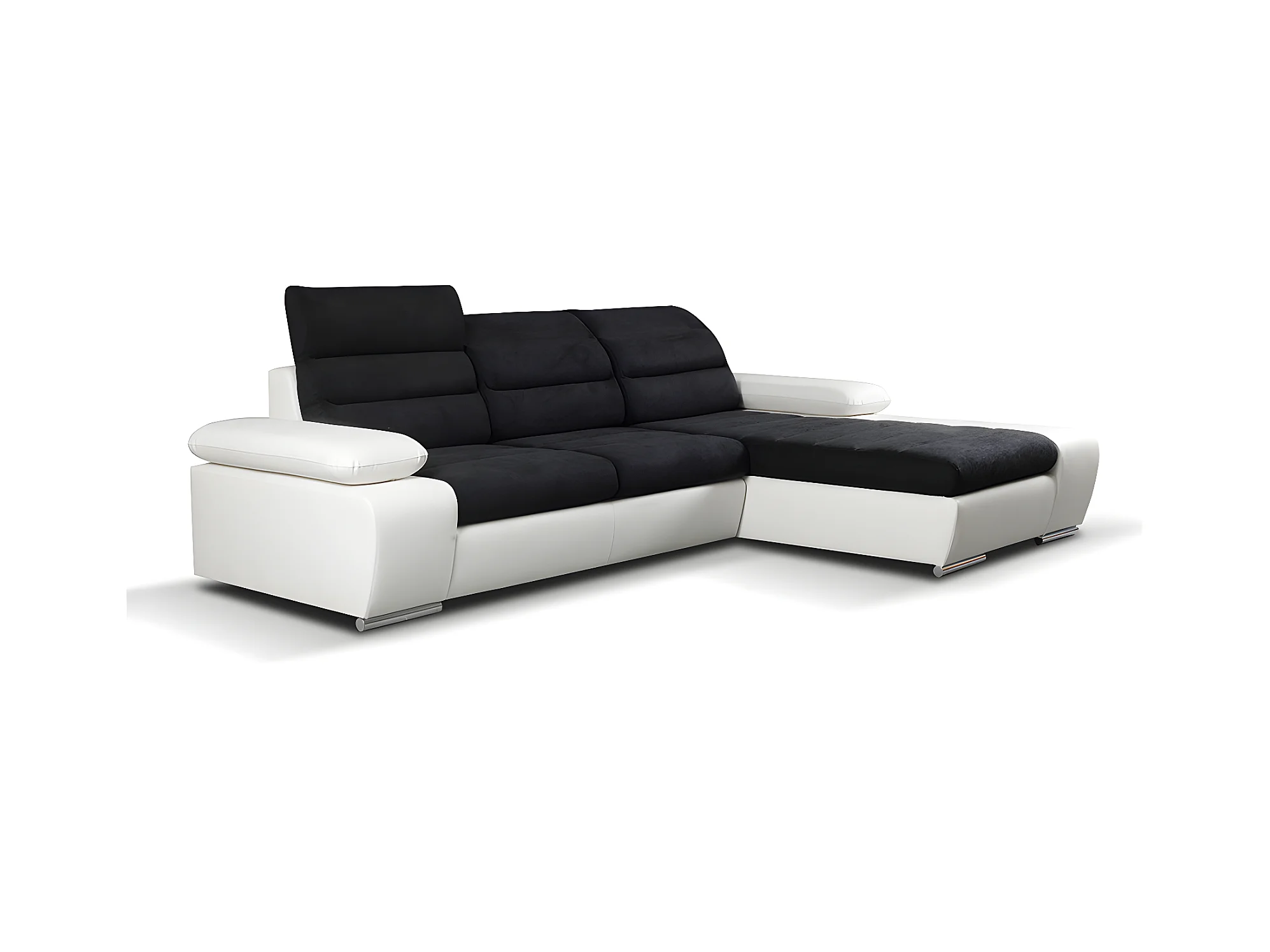 Ecksofa mit Schlaffunktion & Bettkasten - Ecke Rechts - Schwarz & Weiß - MIRABEAU
