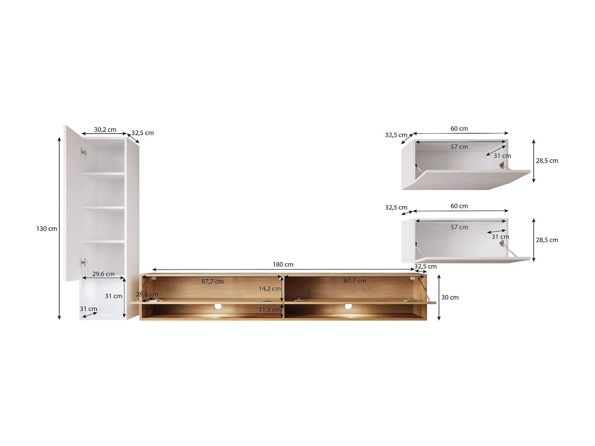 WOHNWAND Amy weiß / weiß Hochglanz / Eiche Wotan 4-teilig