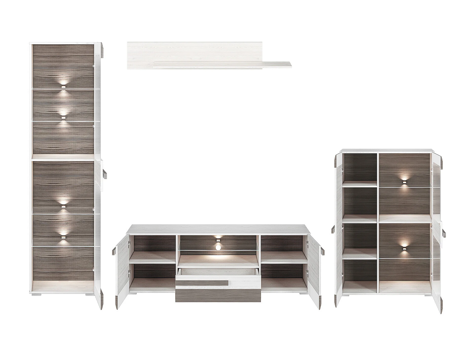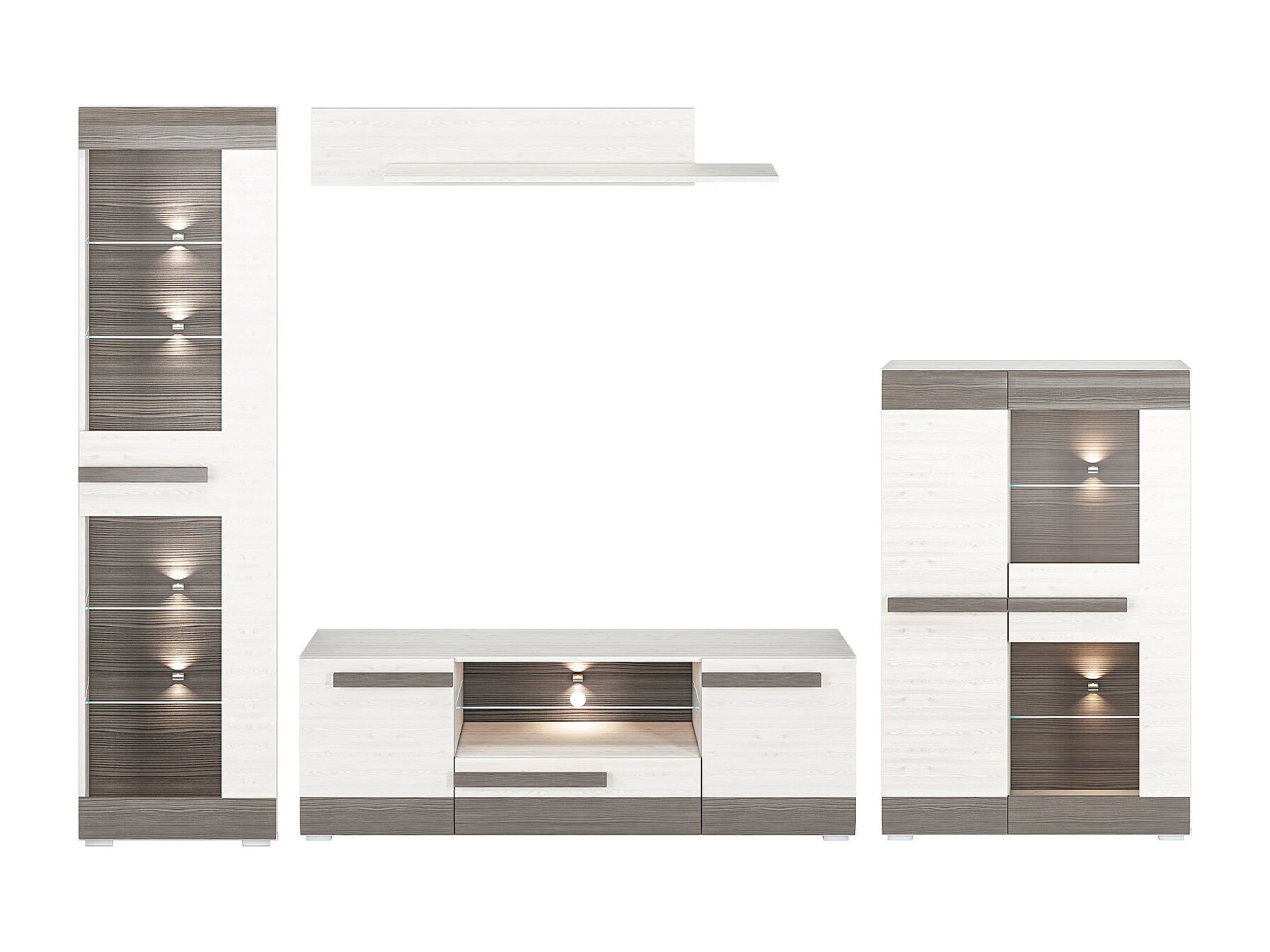 WOHNWAND Blanco Pinie weiß / grau 4-teilig
