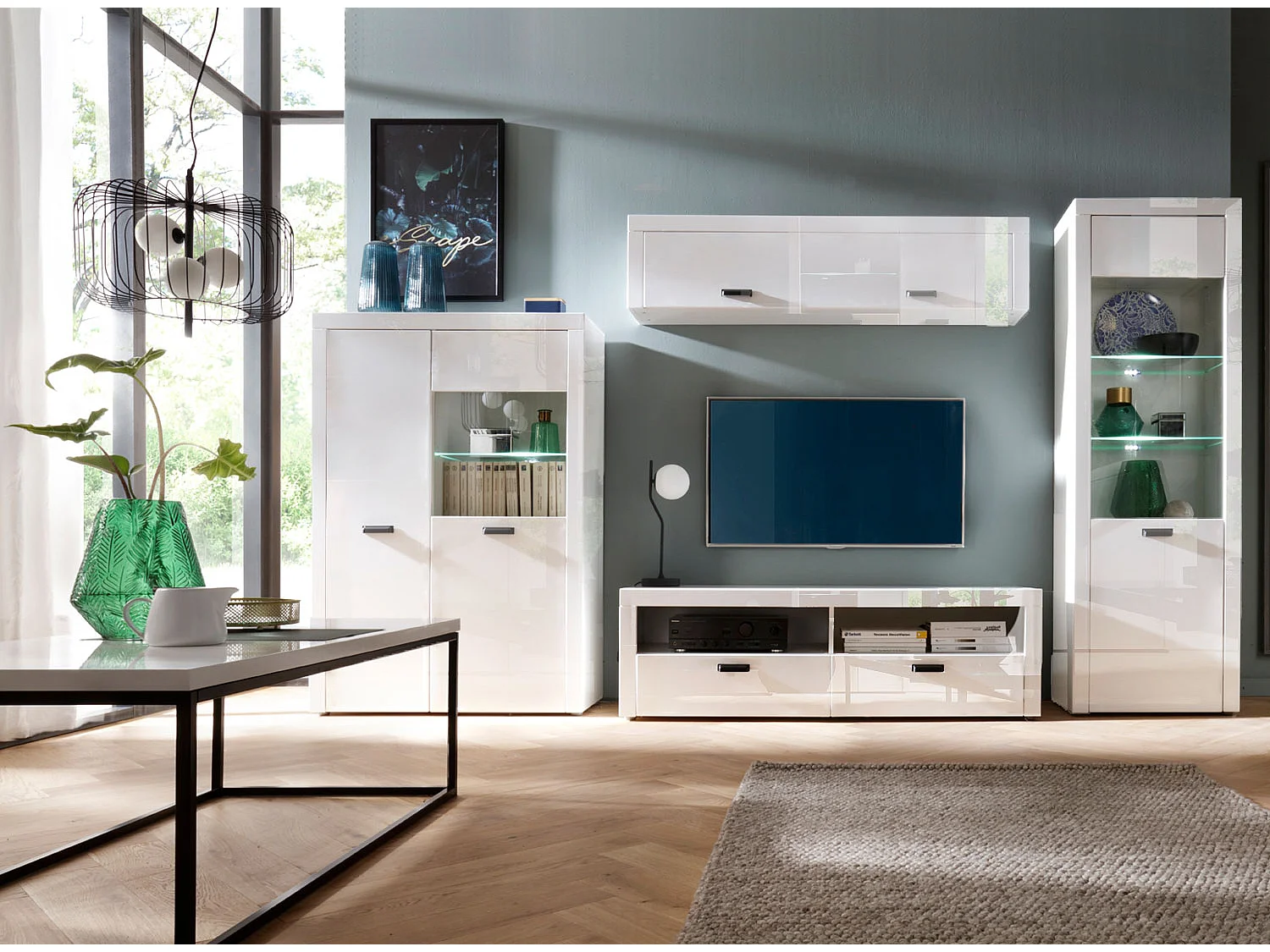 WOHNWAND Bologna-Essen weiß / weiß hg 314 cm / 38 cm / 195 cm