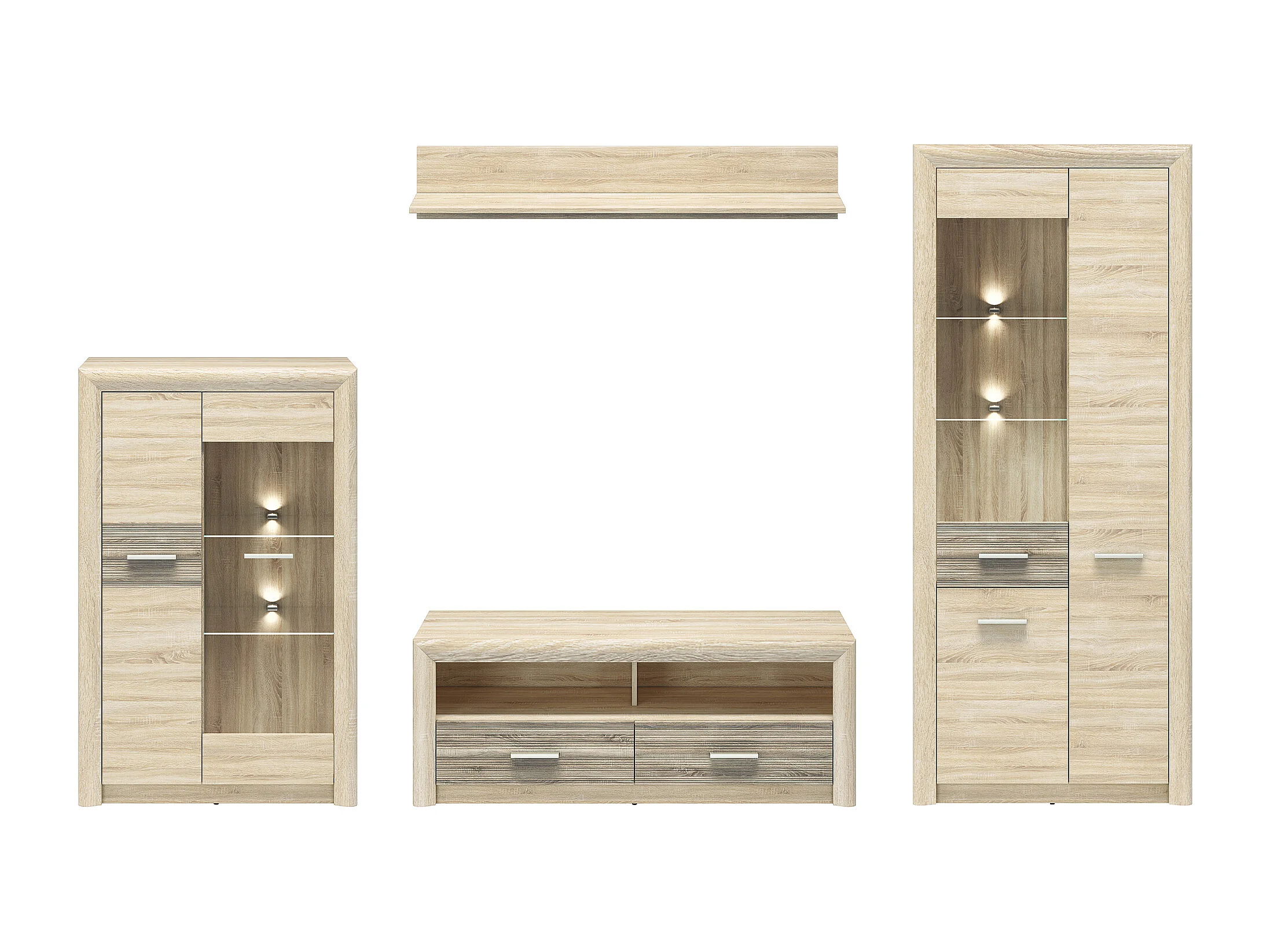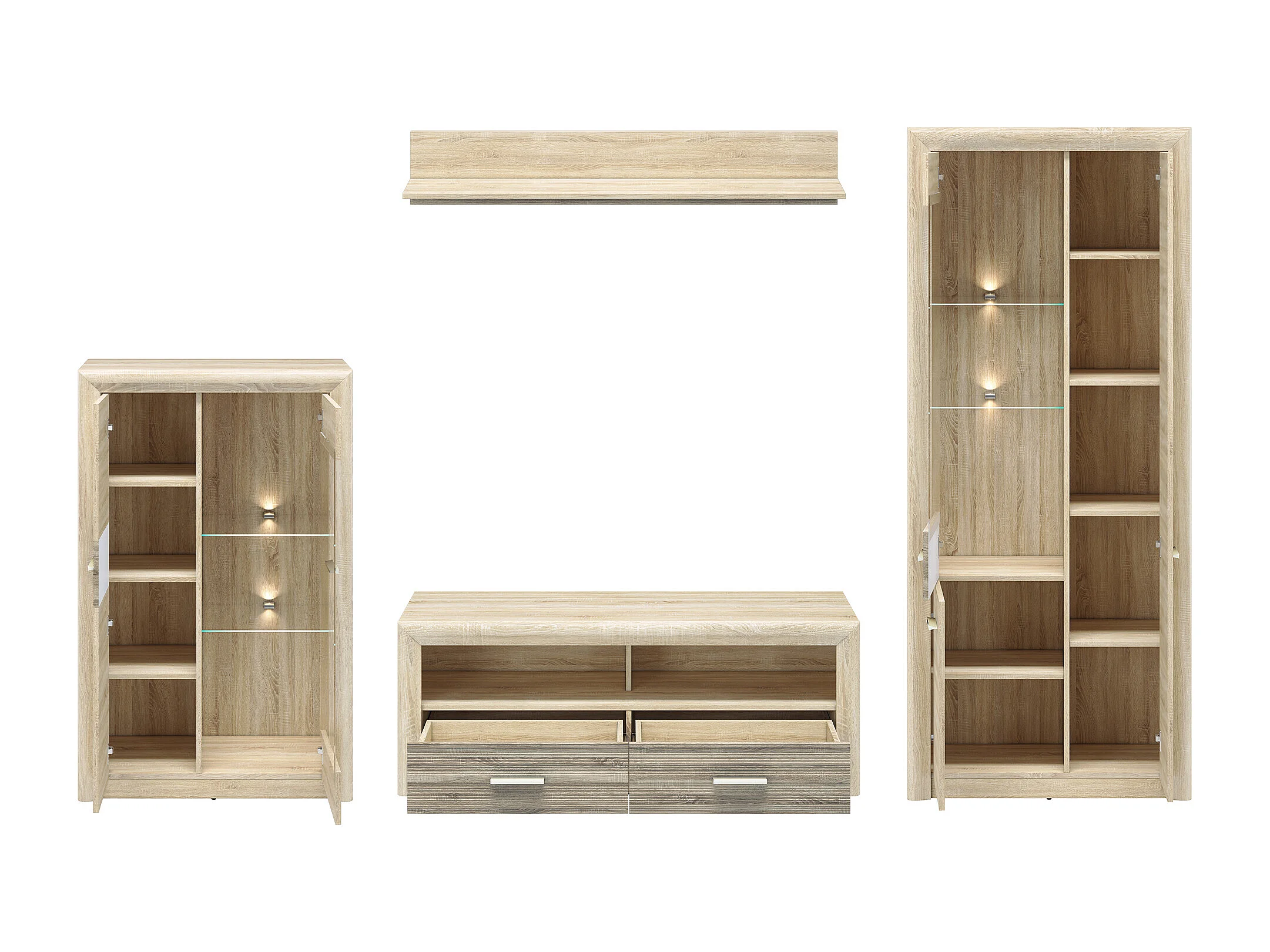WOHNWAND Castel Sonoma Eiche hell / Sonoma Eiche Trüffel 4-teilig