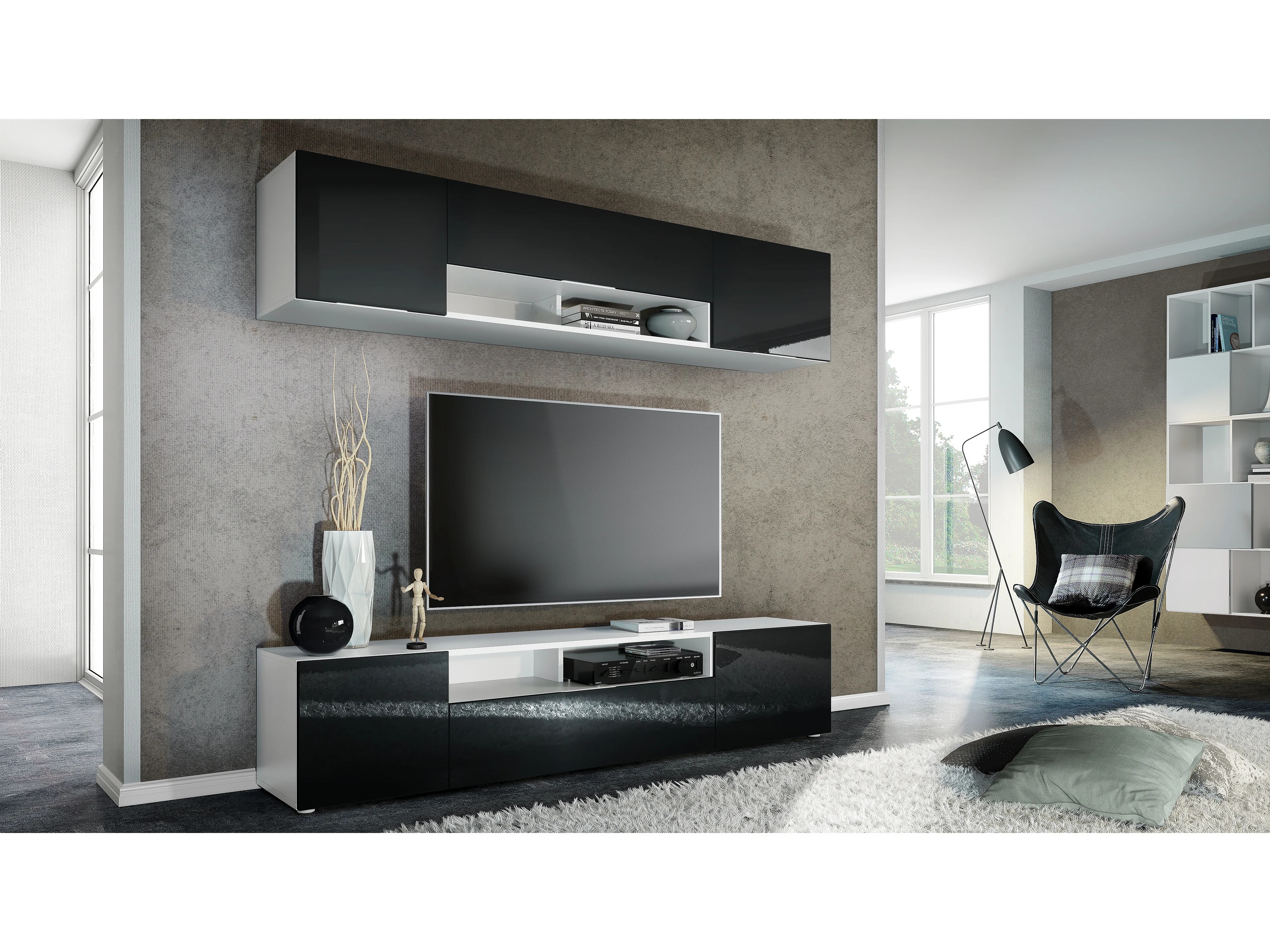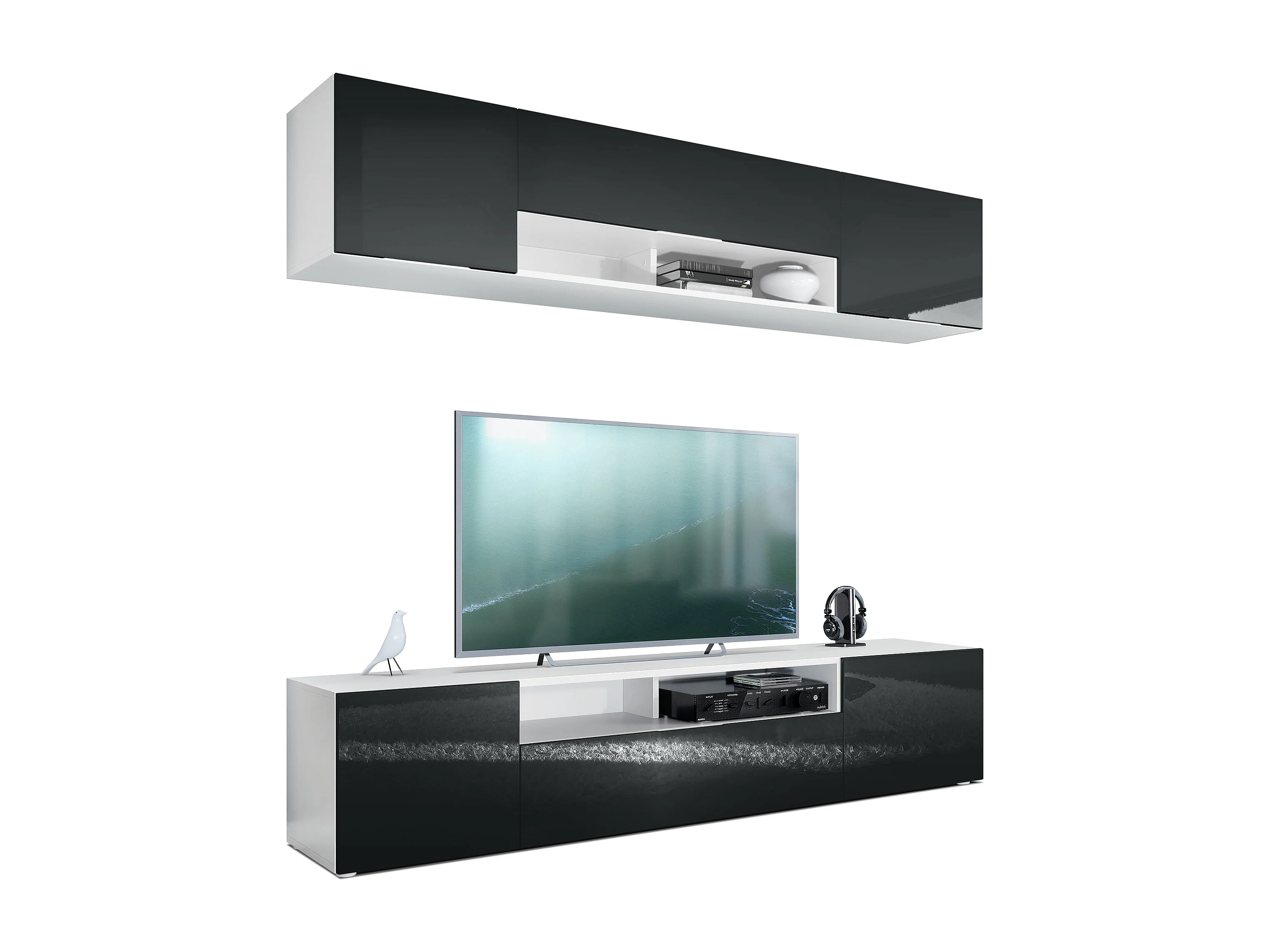 WOHNWAND Mogan Fronten in Schwarz Hochglanz