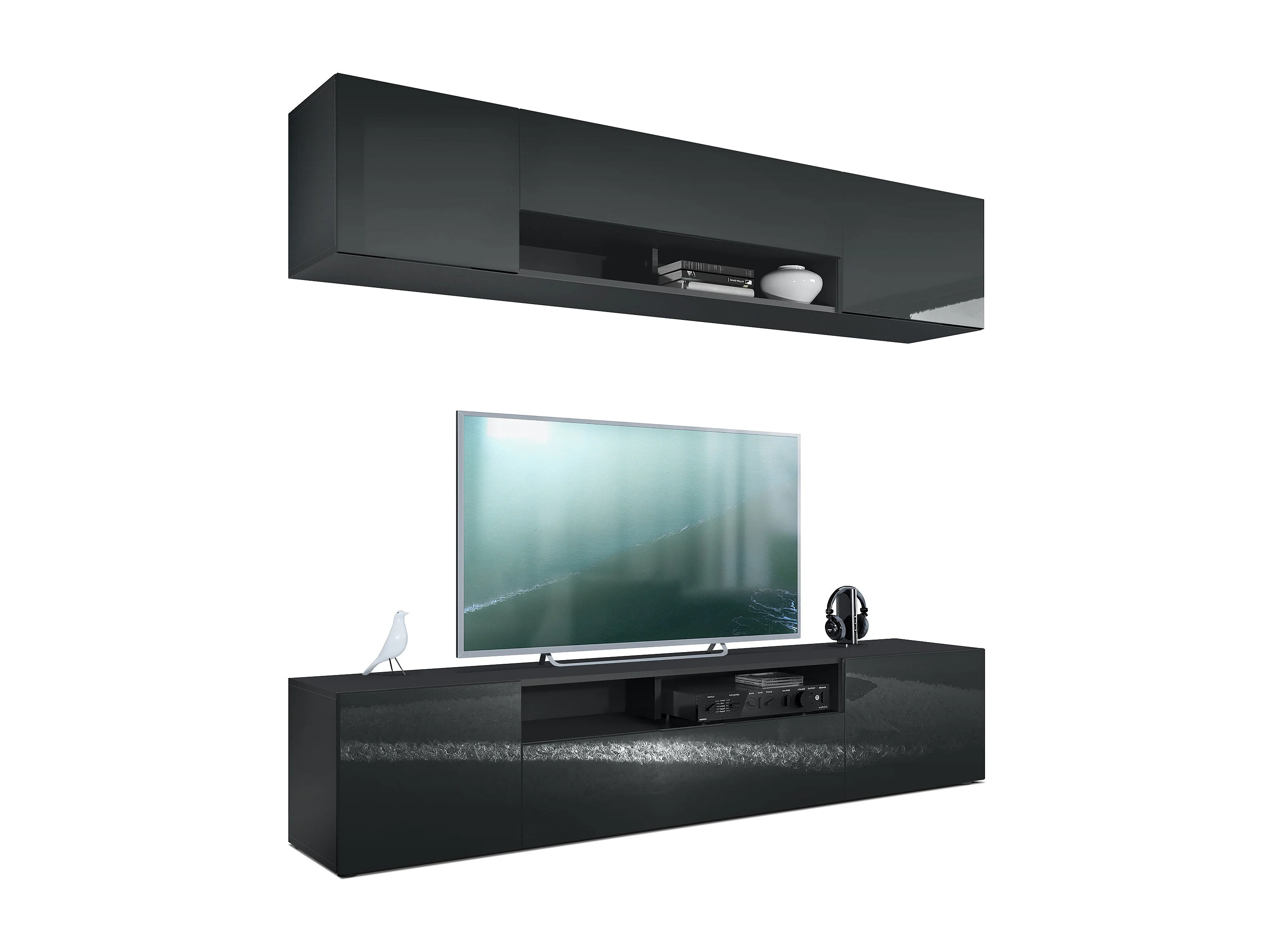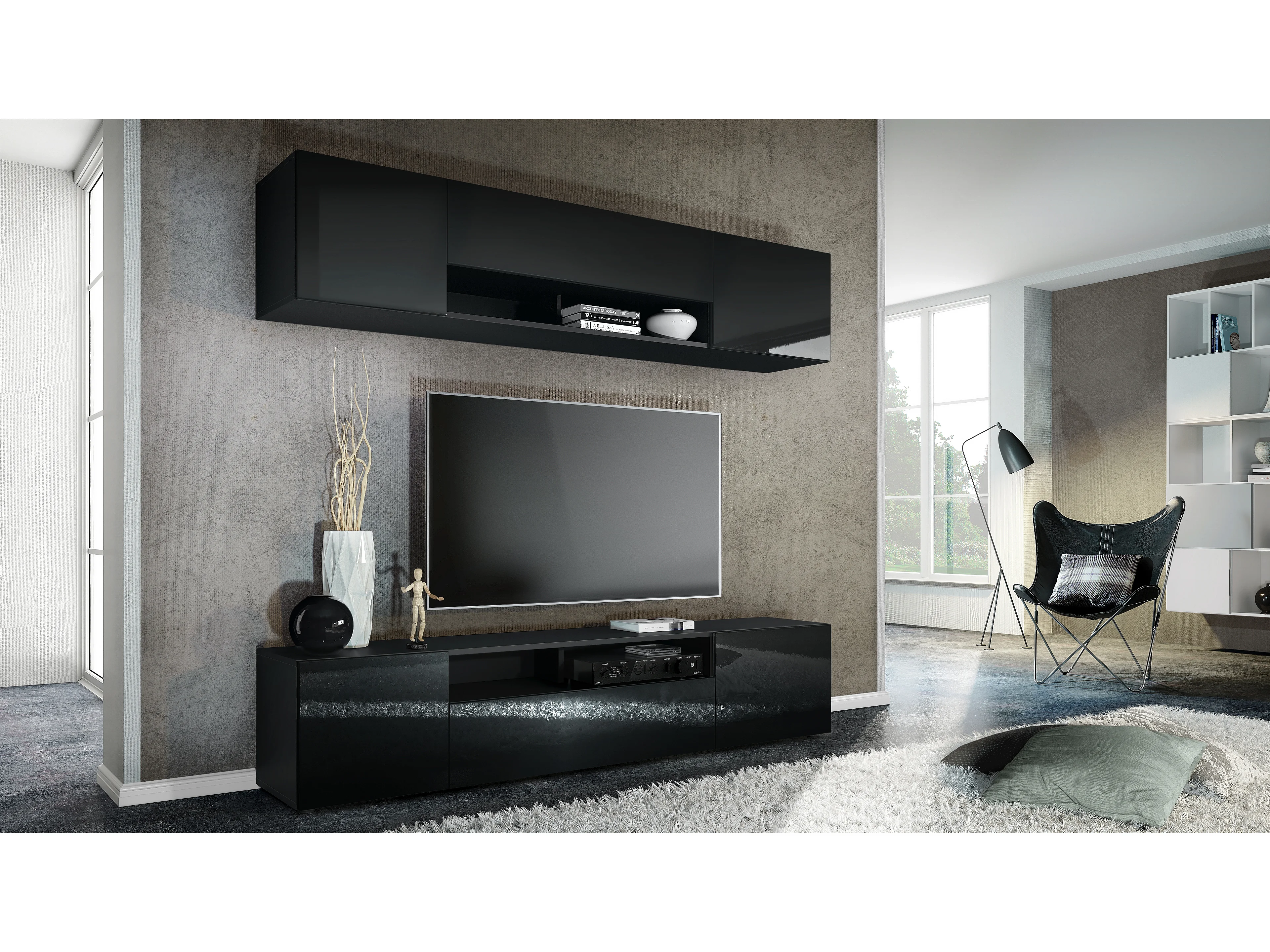 WOHNWAND Mogan Fronten in Schwarz Hochglanz