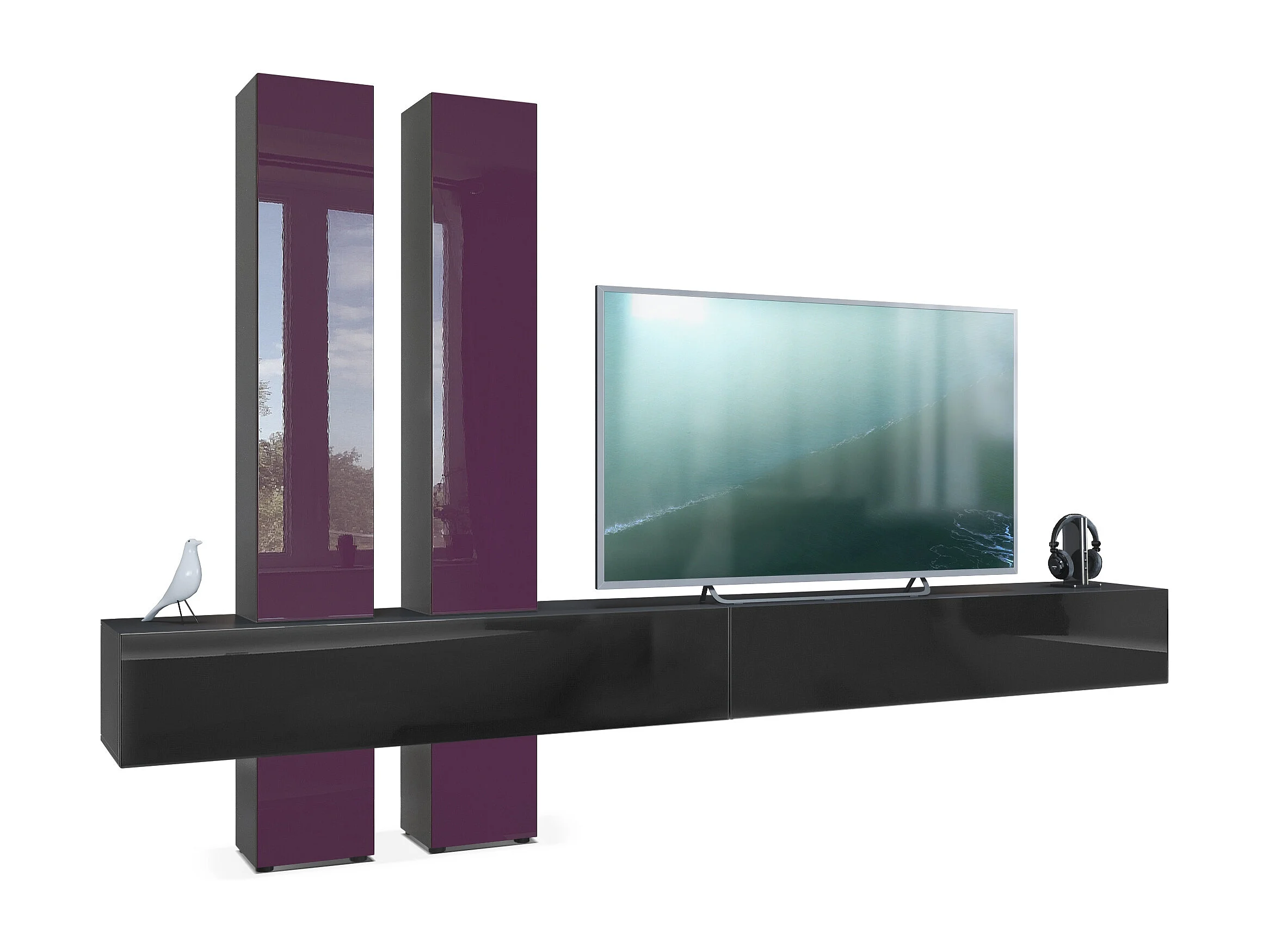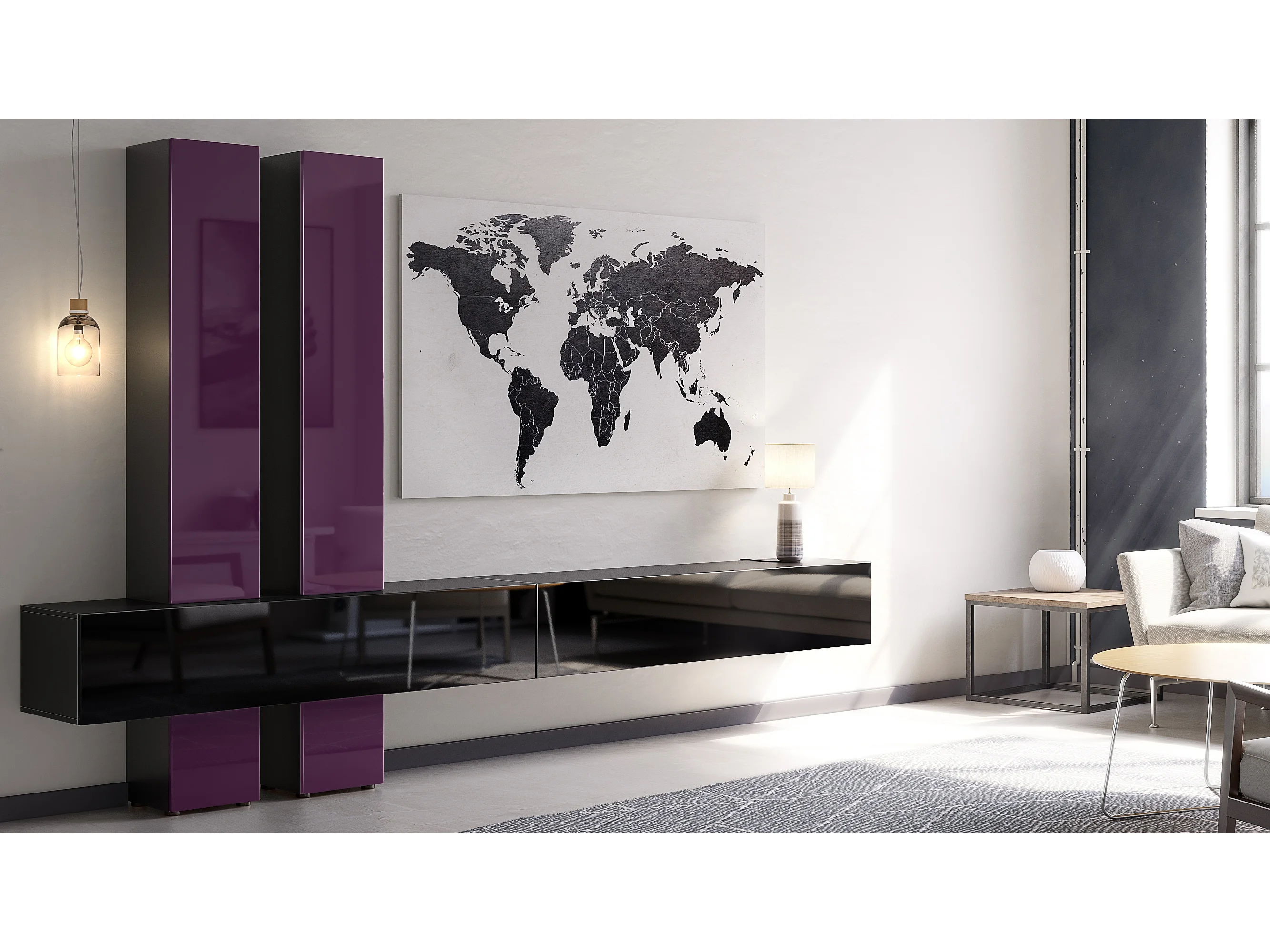 WOHNWAND Moja Türen in Brombeer Hochglanz
